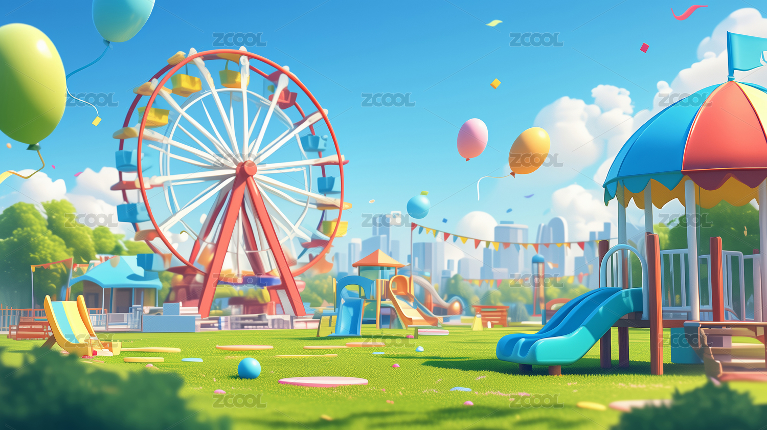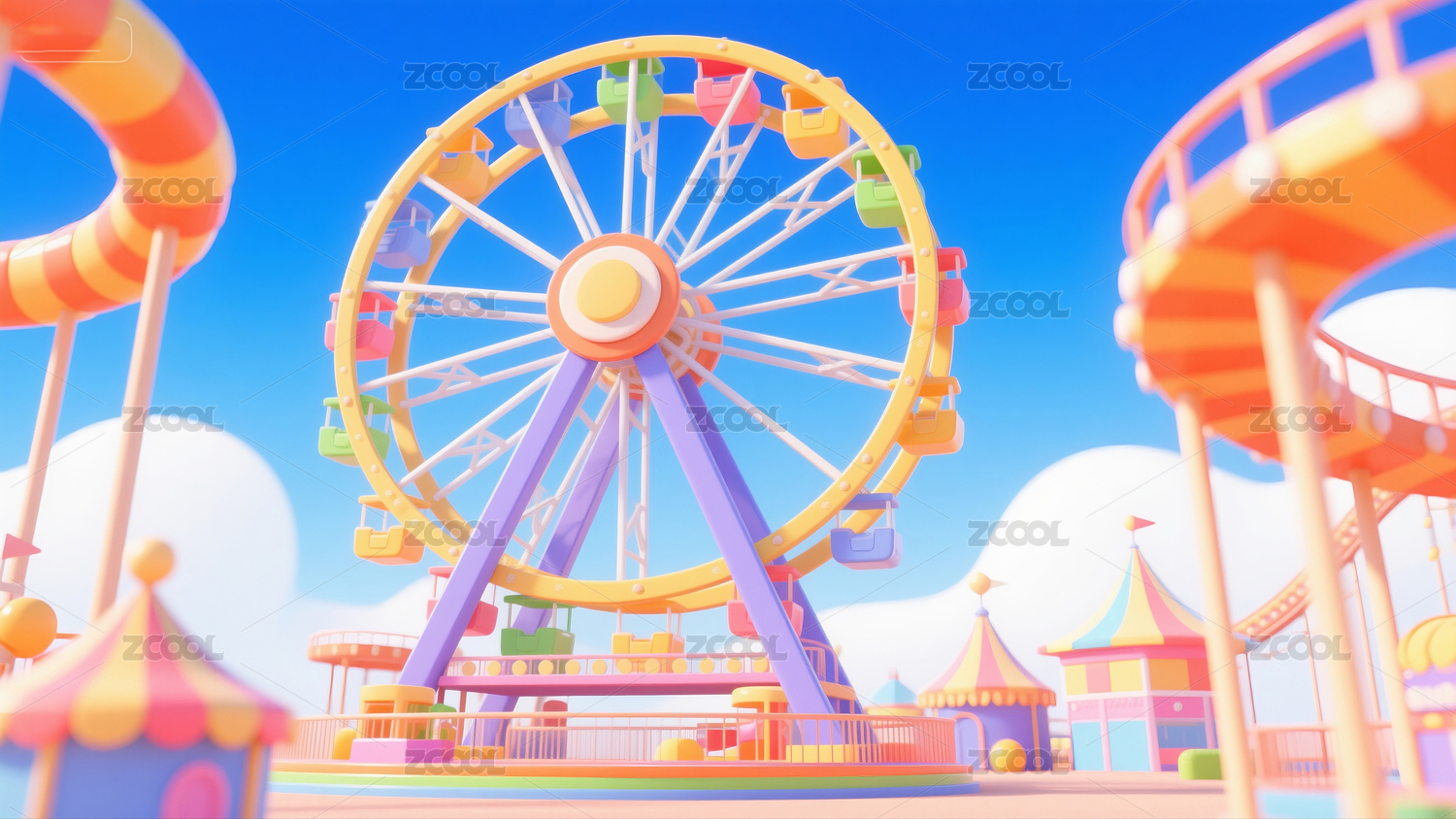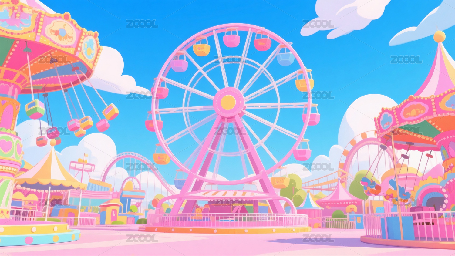 摩天轮,游乐场,插画,卡通,快乐,童年,开心,户外,旋转木马