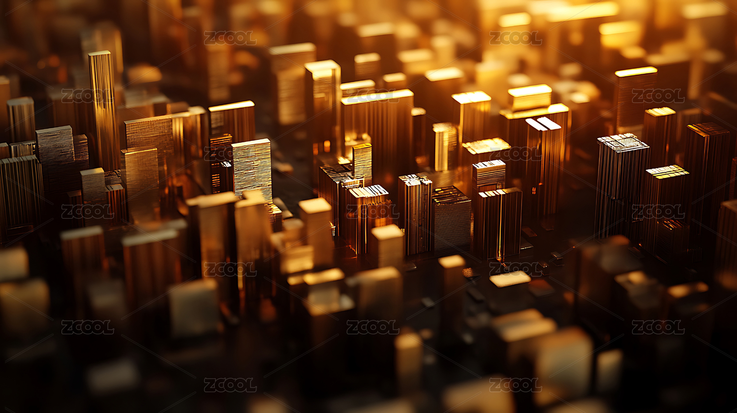 金色微缩模型展示未来城市