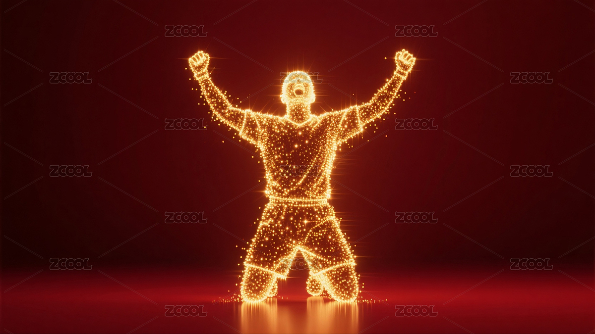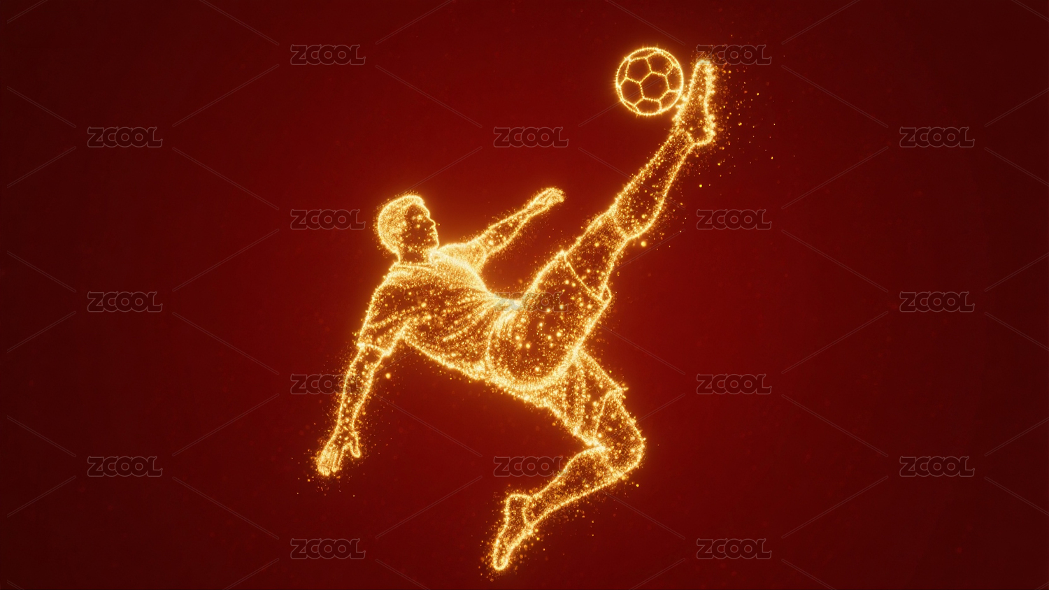 足球,足球运动员,踢足球,世界杯,粒子,插画,抽象,红色,金色,发光
