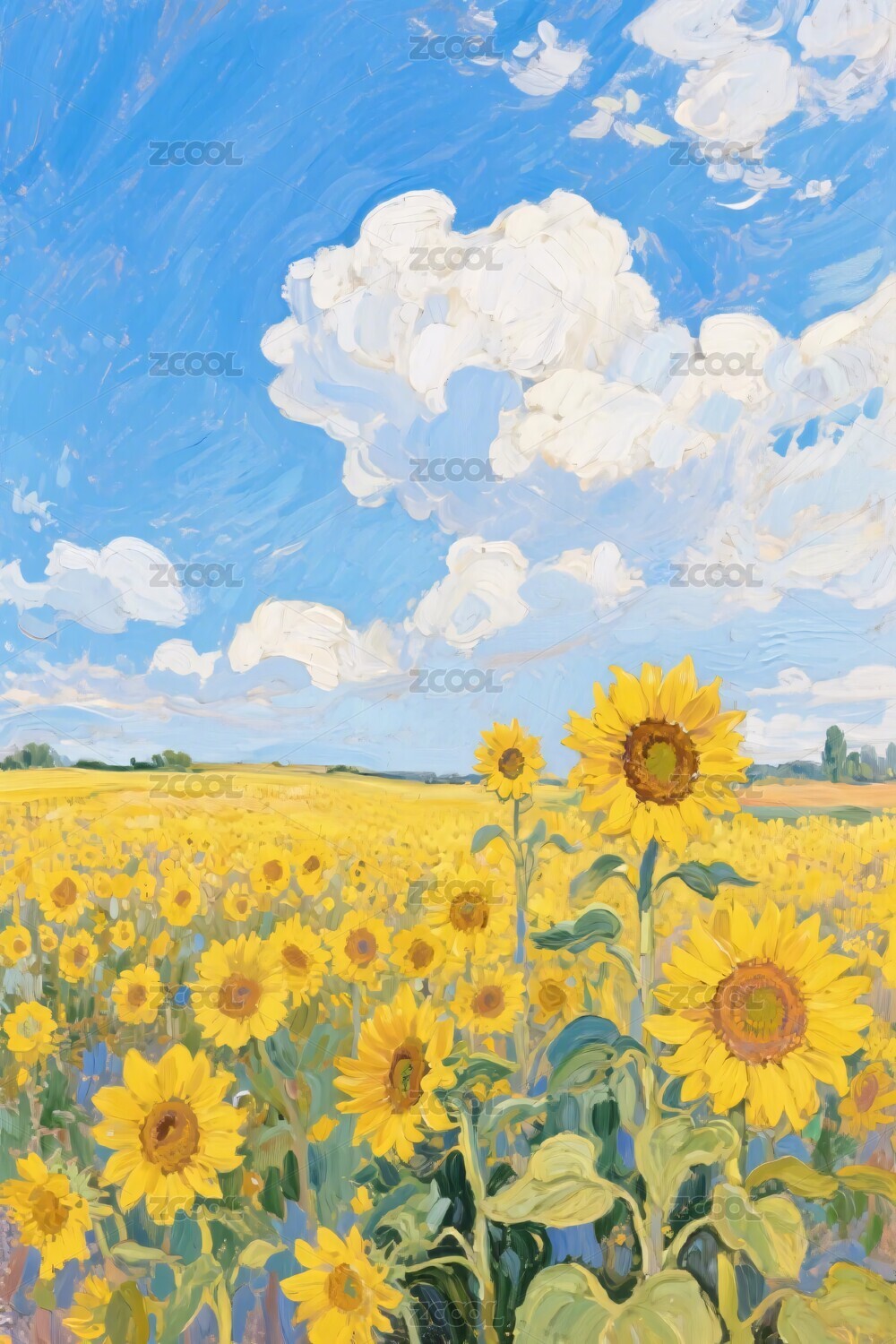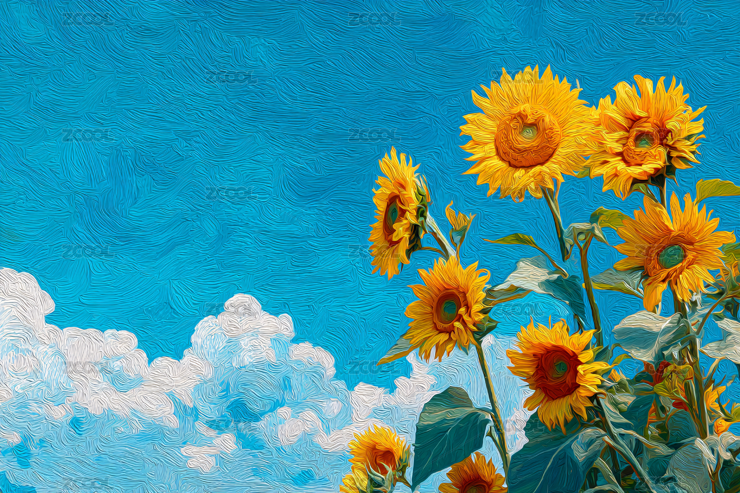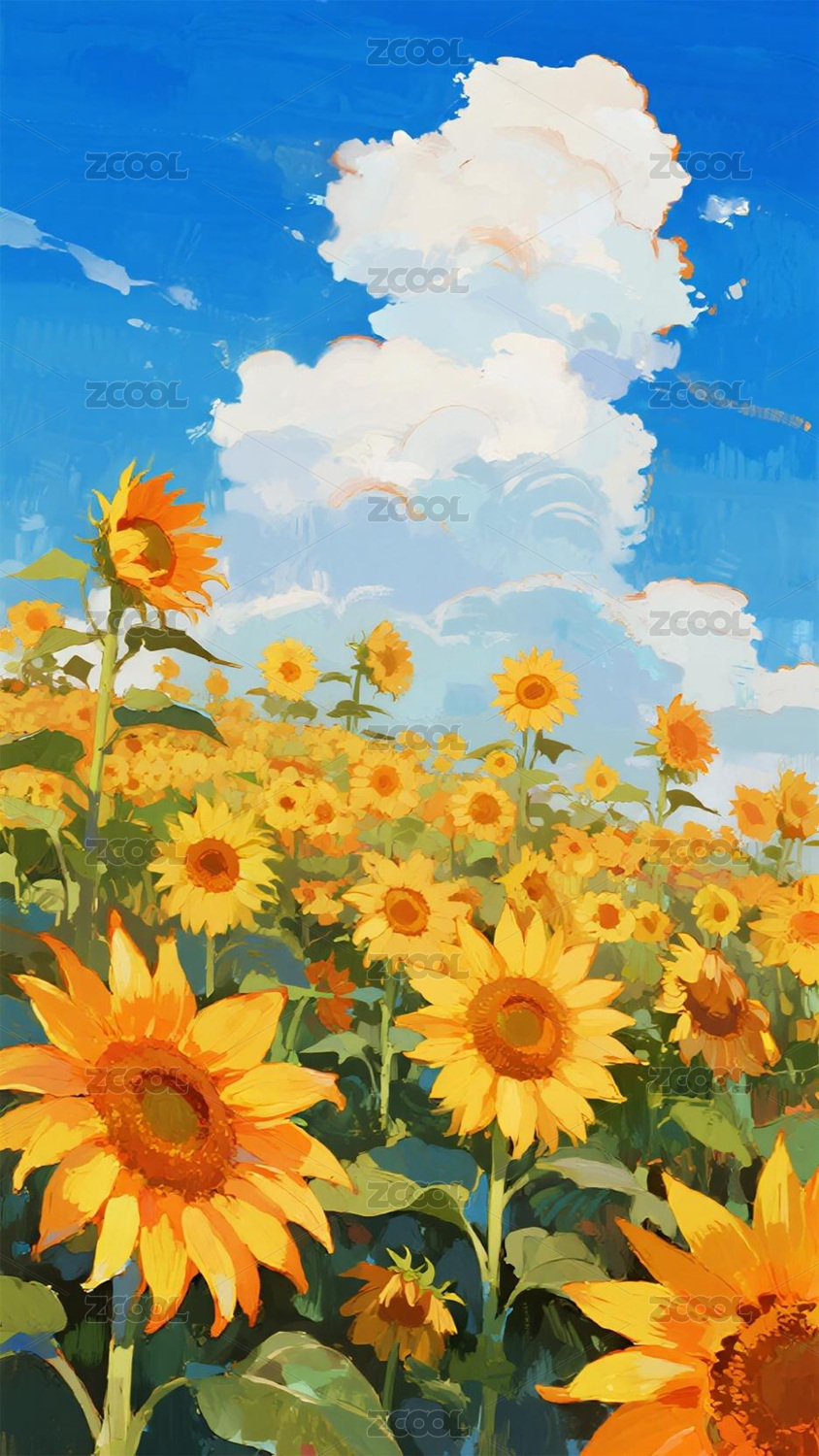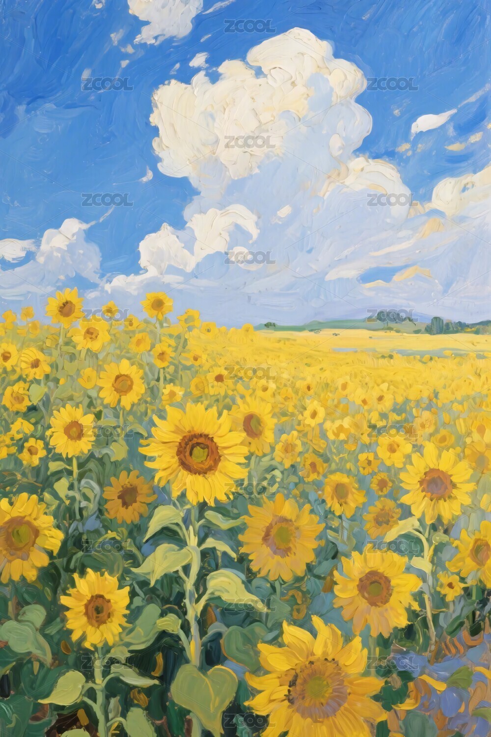 油画风格向日葵