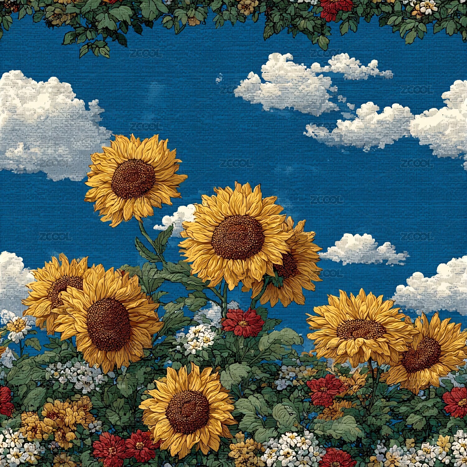 蓝天背景下的向日葵插画
