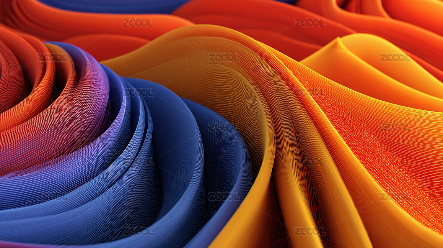 蓝色与橙色交织的抽象波浪图案
