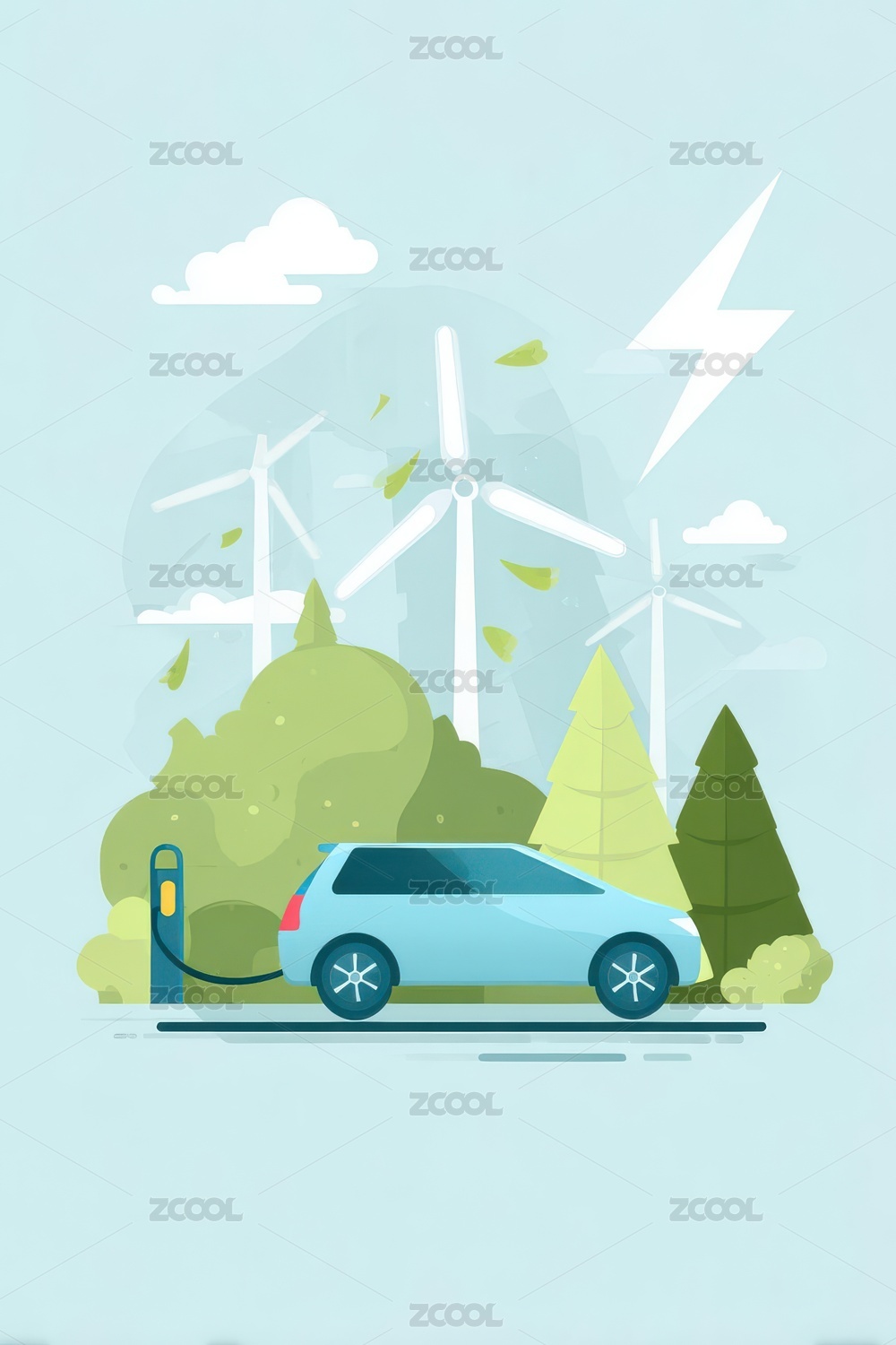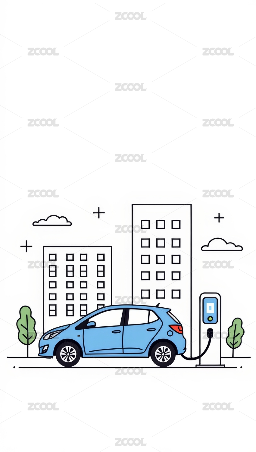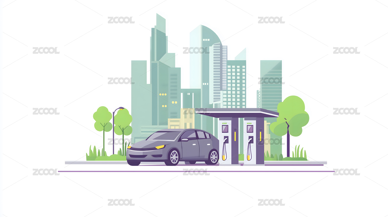 电动汽车,充电桩,城市,绿地,树木,高楼,蓝天,白云,环保,新能源