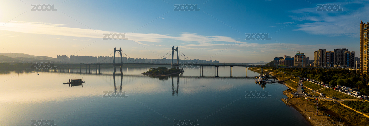 湖南衡阳湘江东洲岛夏日城市风光航拍