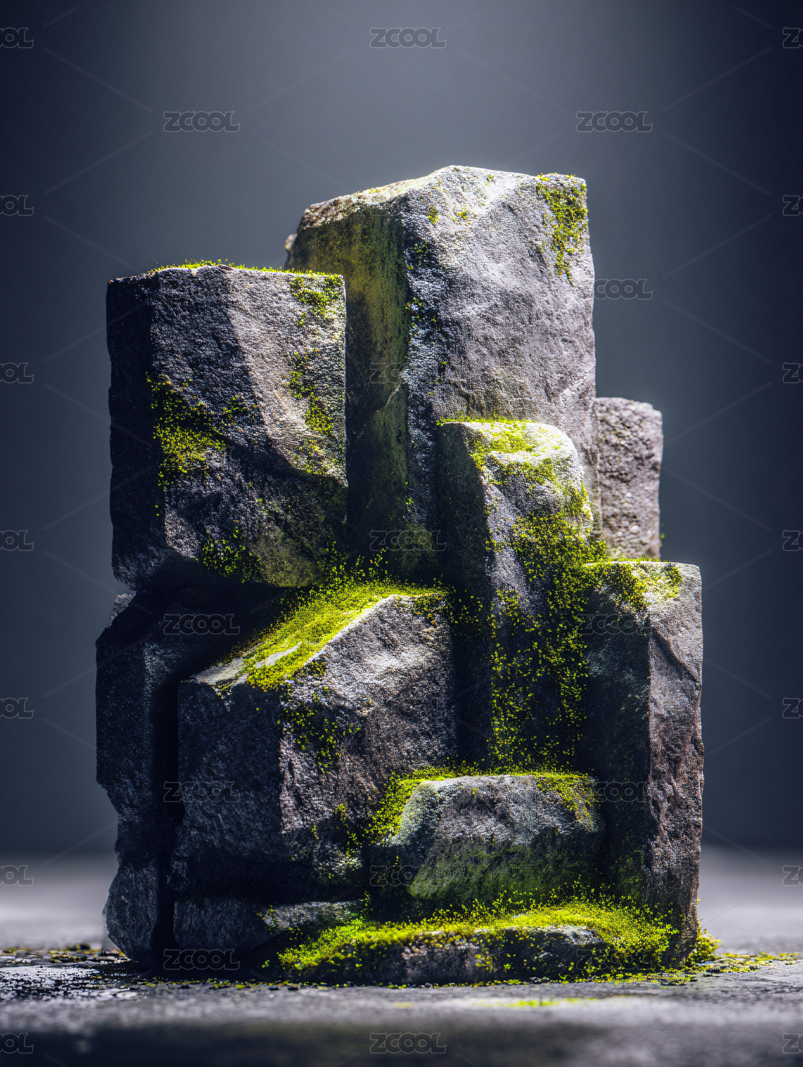 禅意苔藓石景