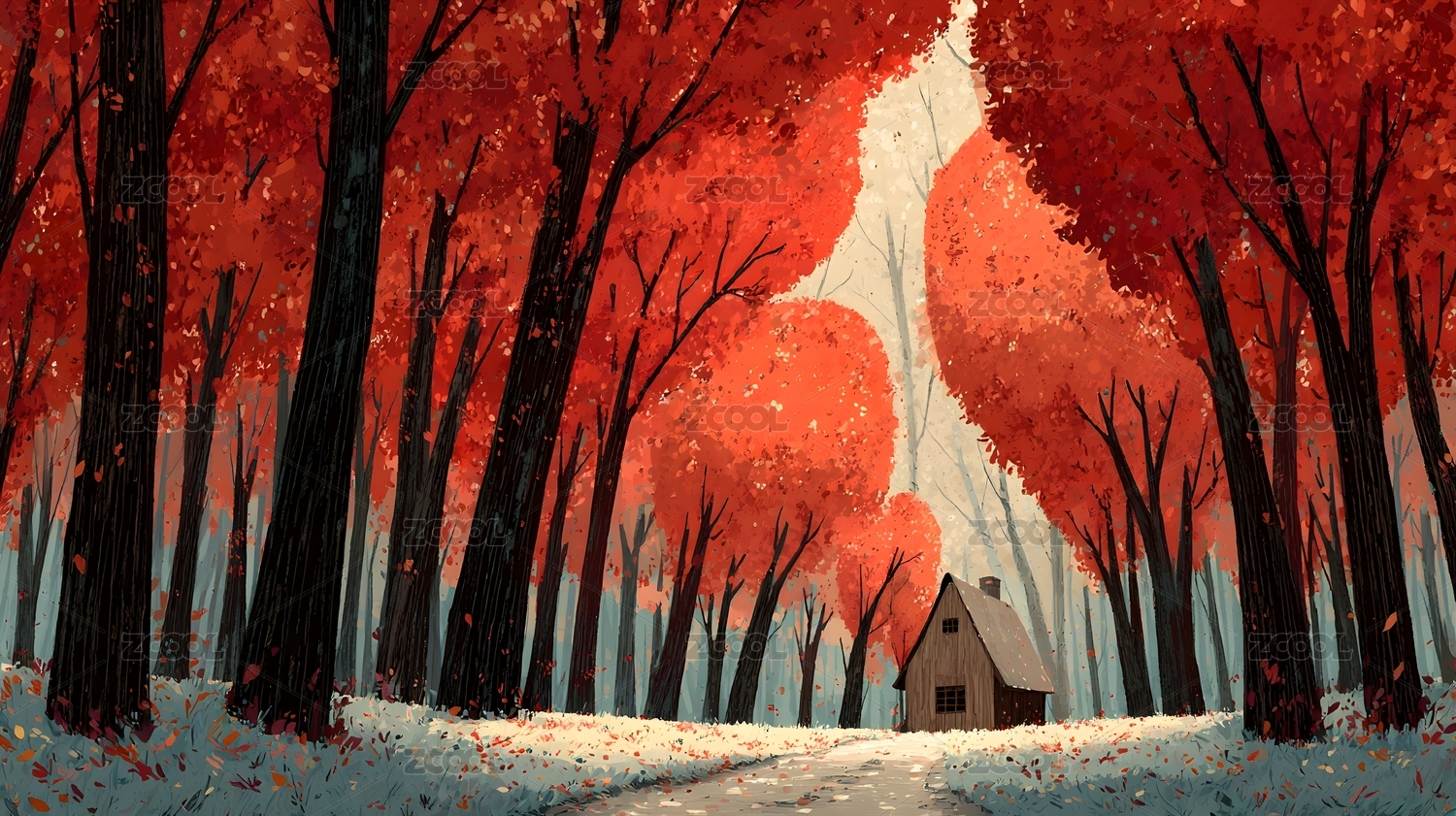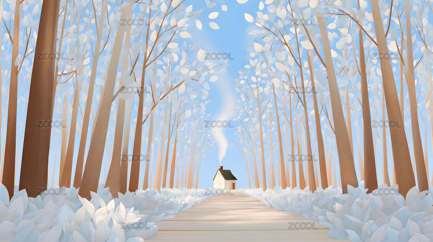 背景,可爱,森林,治愈,唯美,壁纸,木屋,小径,风景,树木