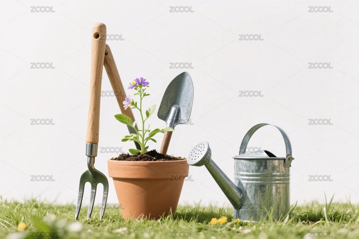 园艺工具与植物的绿植场景