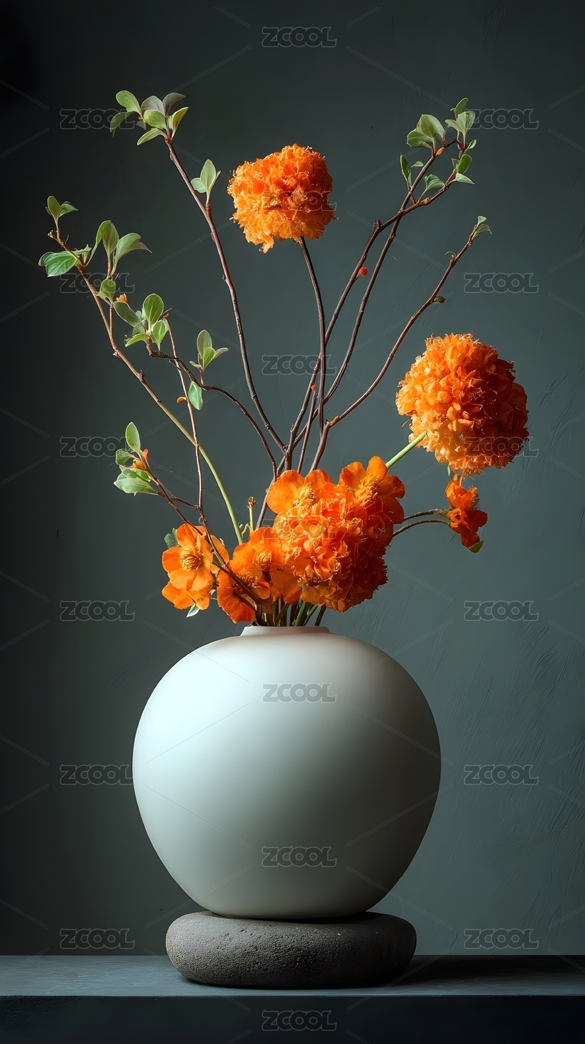 橙色花朵插花艺术