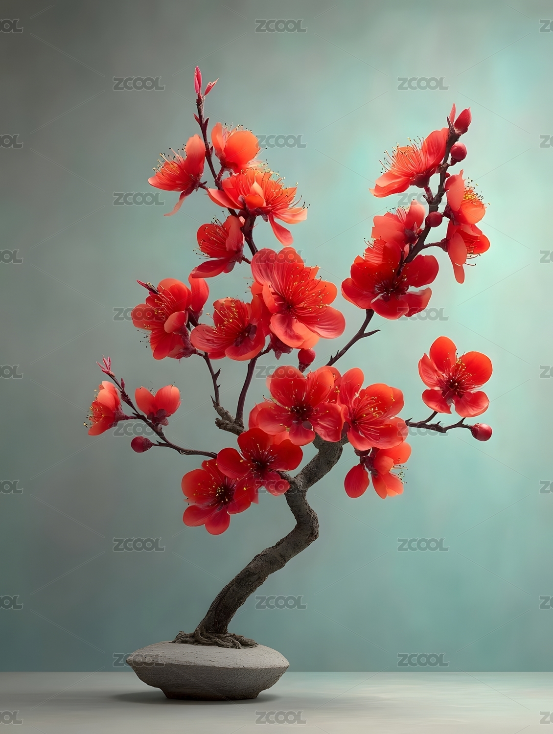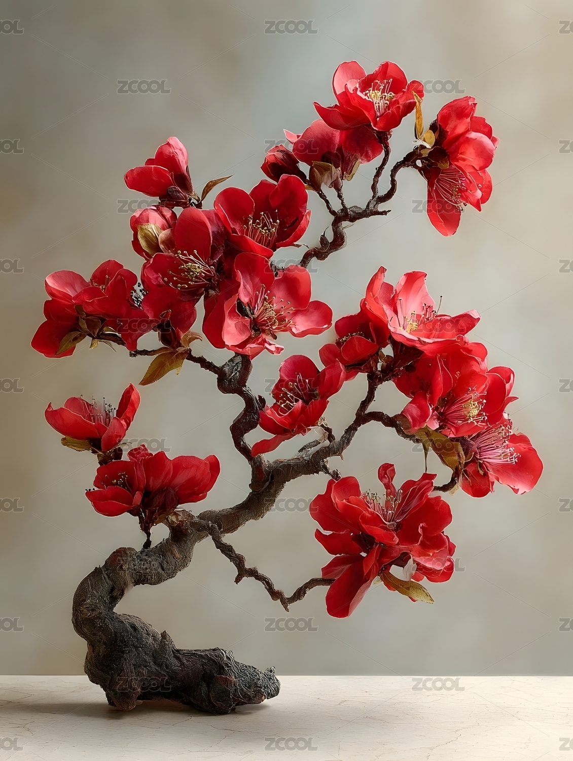 红色花朵盆景艺术
