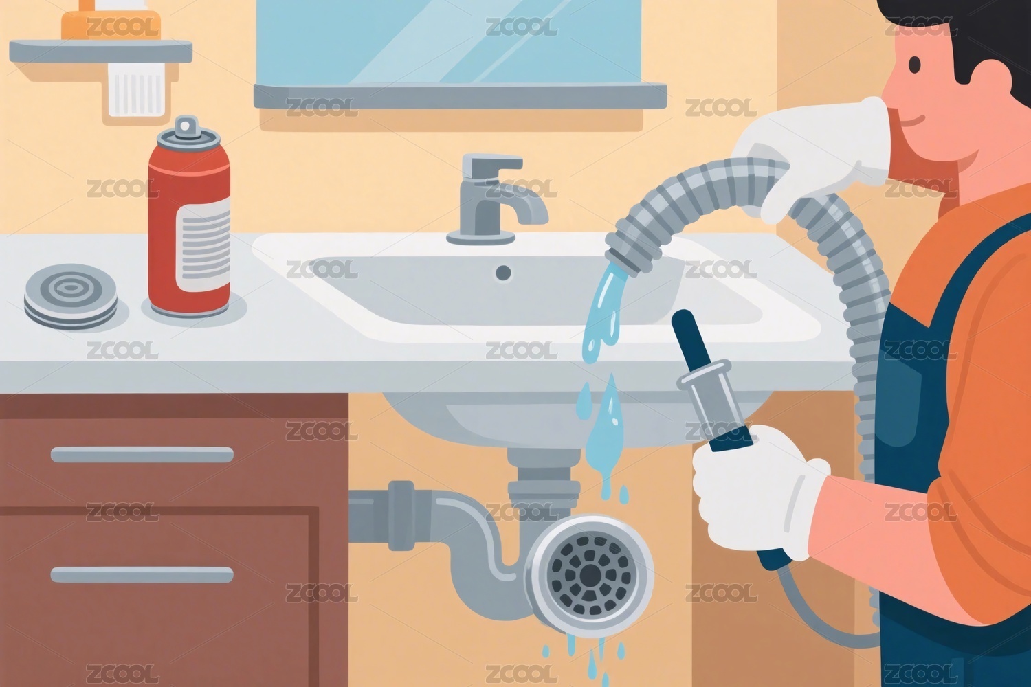洗手池,水龙头,洗手液,镜子,卡通,手绘,插画,生活用品,卫浴,红色