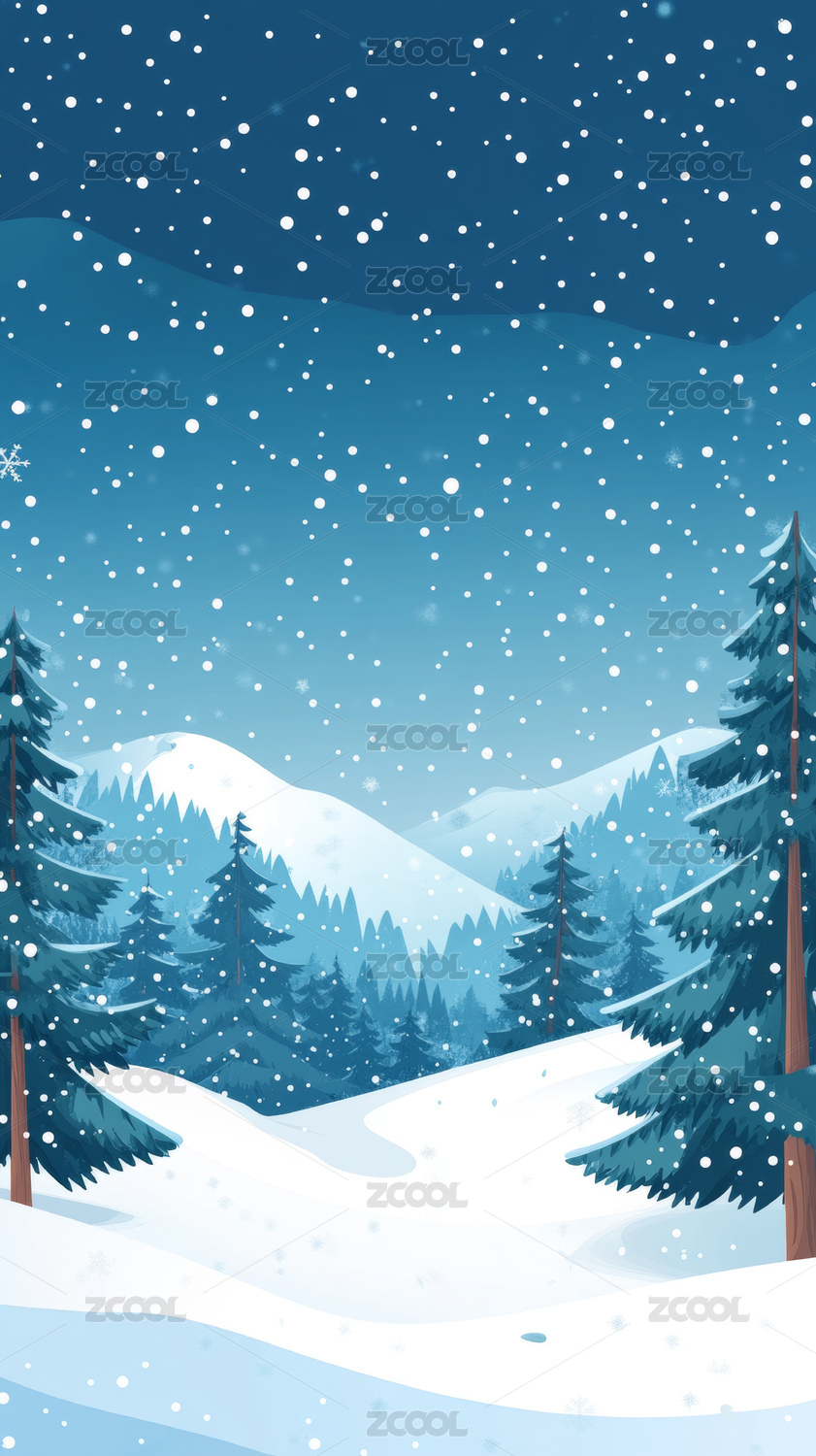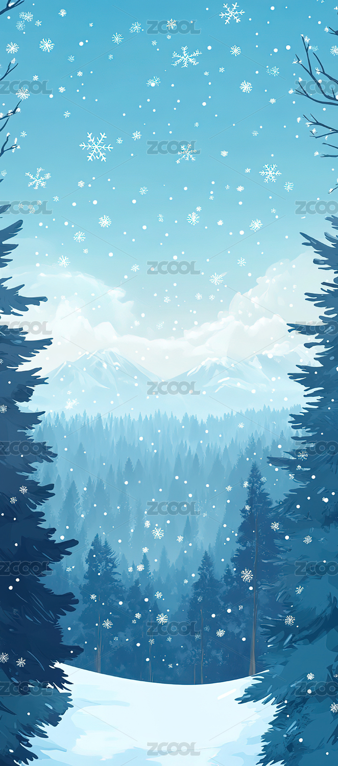 冬天山林插画