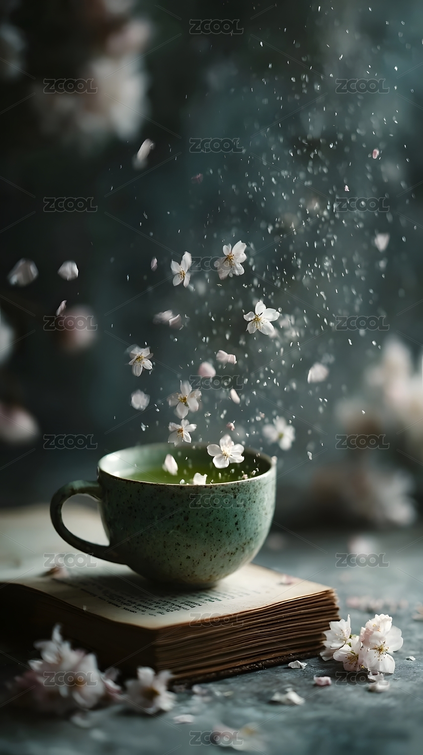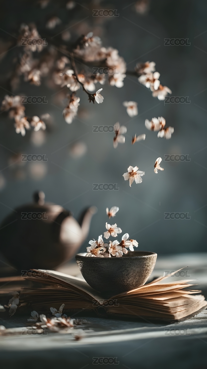 花朵,花瓣,书籍,书本,花枝,桌面,静物,花香,花影,茶杯