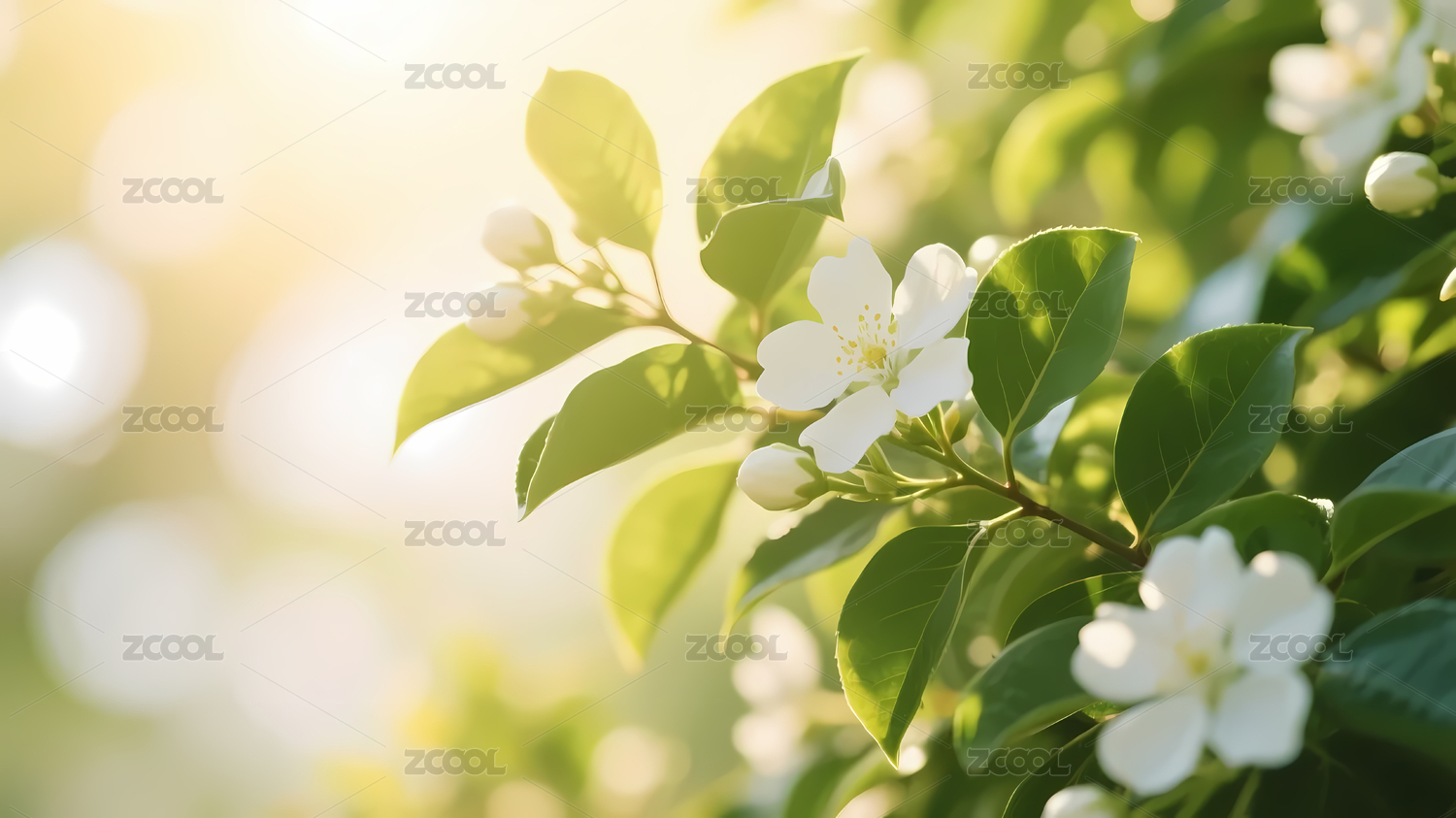 白花绿叶阳光自然景