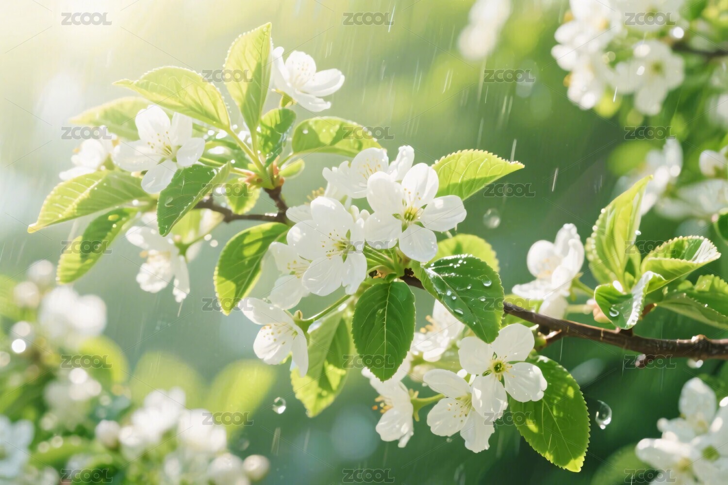 白花绿叶春天景象