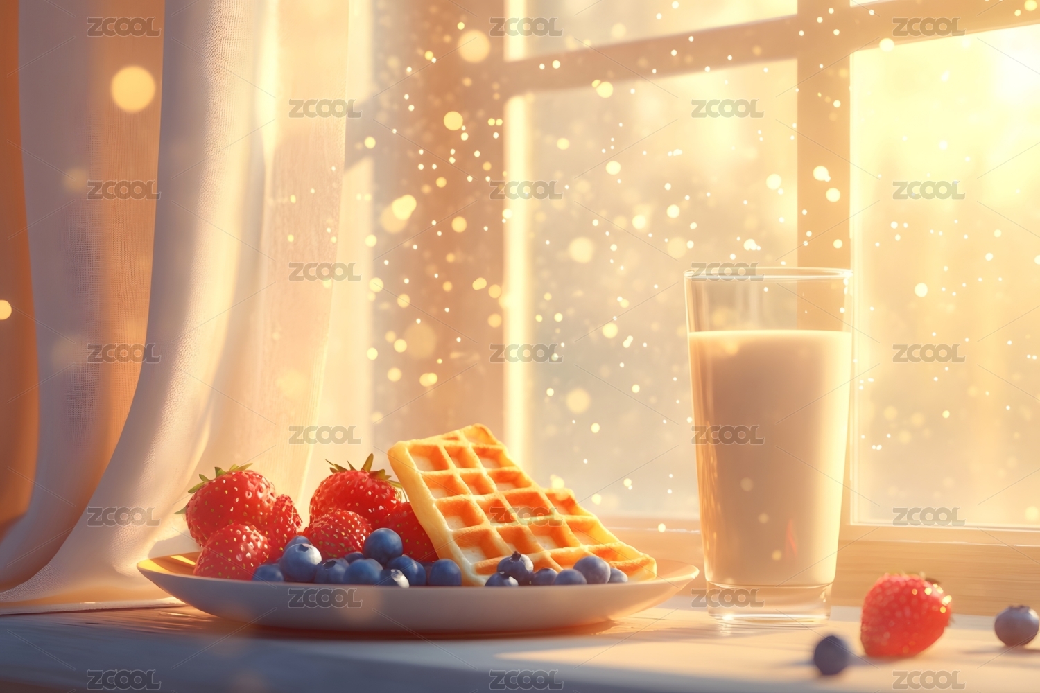 温馨窗台甜点插画