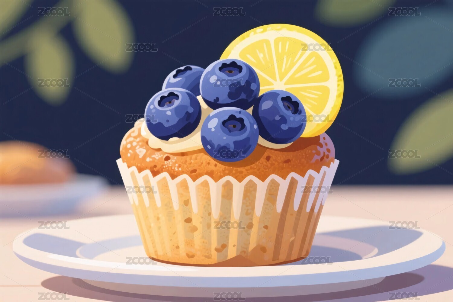 蓝莓柠檬马芬蛋糕插画