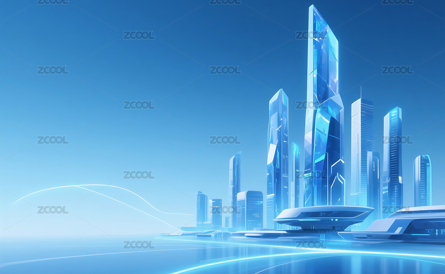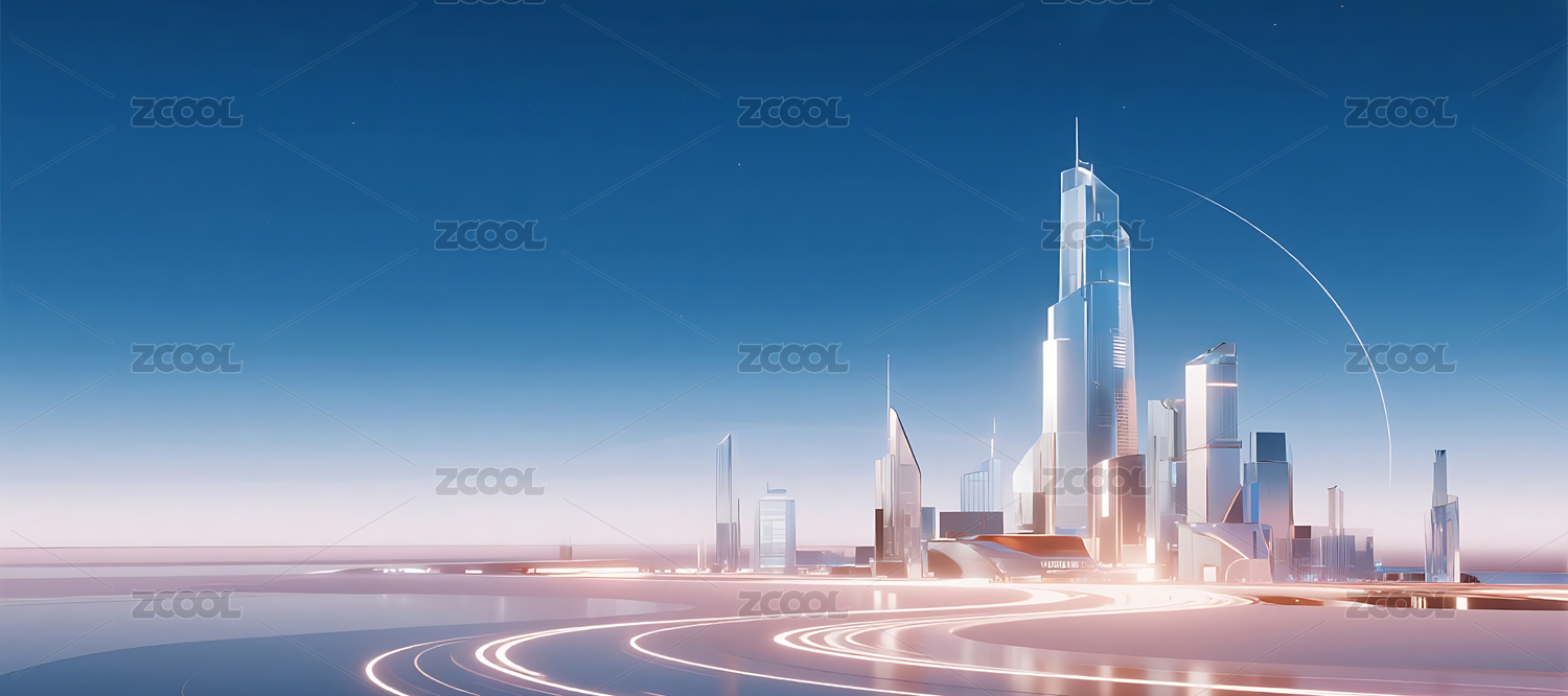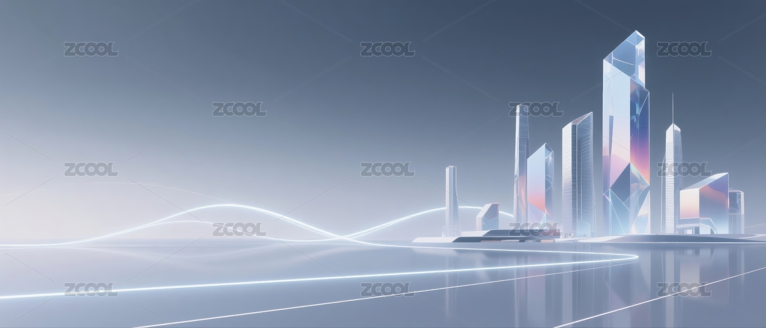 水晶城市天际线科技背景