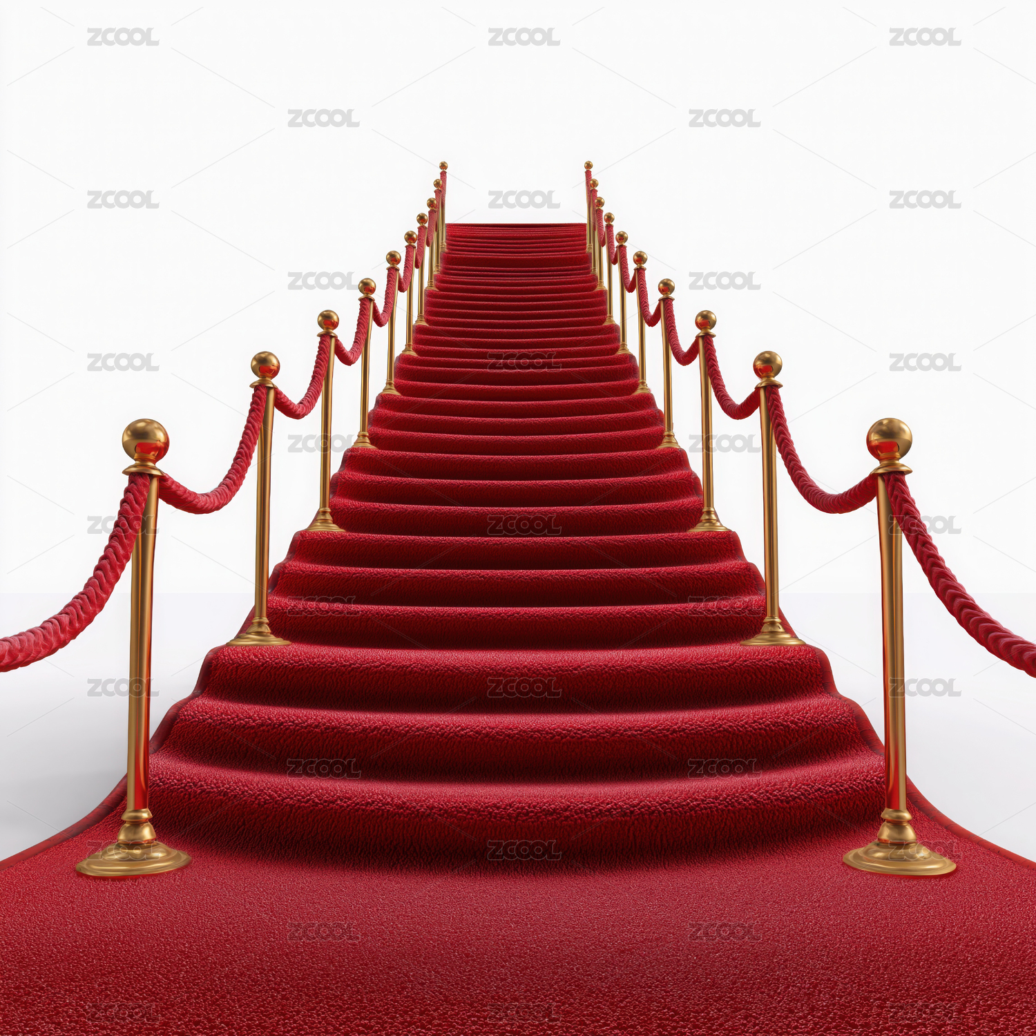 简单欧式建筑房间红地毯的楼梯台阶3D插画