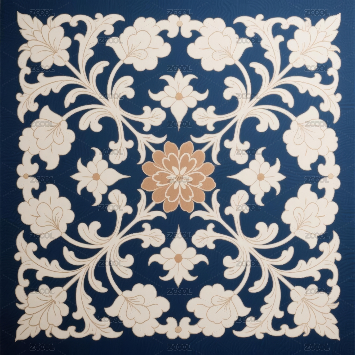 蓝色花卉传统纹样装饰