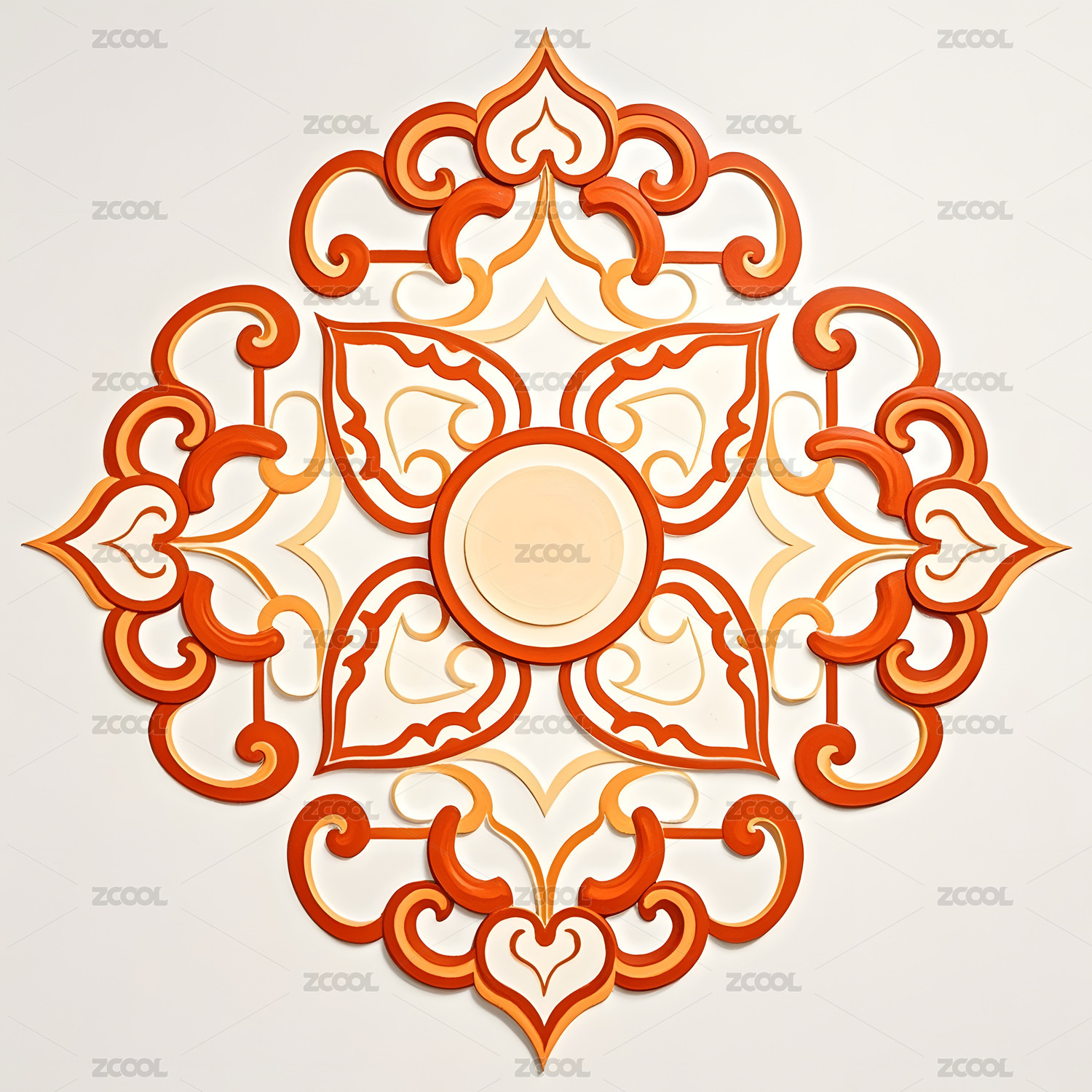 橙红立体花纹圆形图案