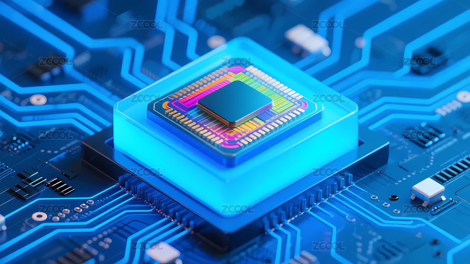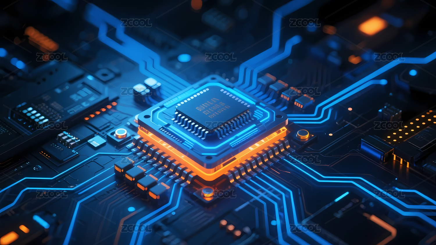 芯片,摄像机,电路板,科技,数字,插画,电子元件,蓝色,电路,科技元素