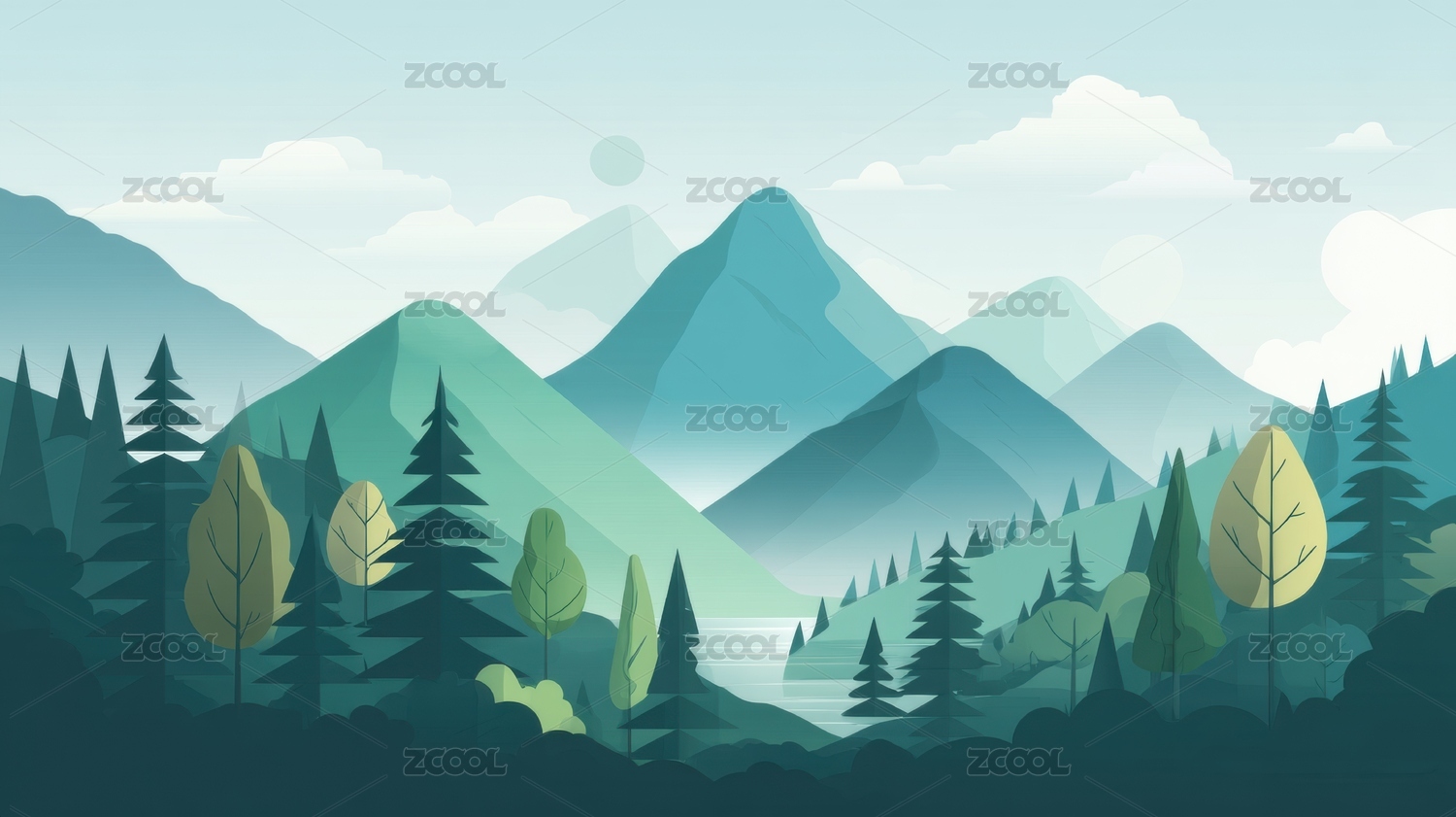 山景,风景,插画,矢量,背景,自然,山水,宁静,天空,森林