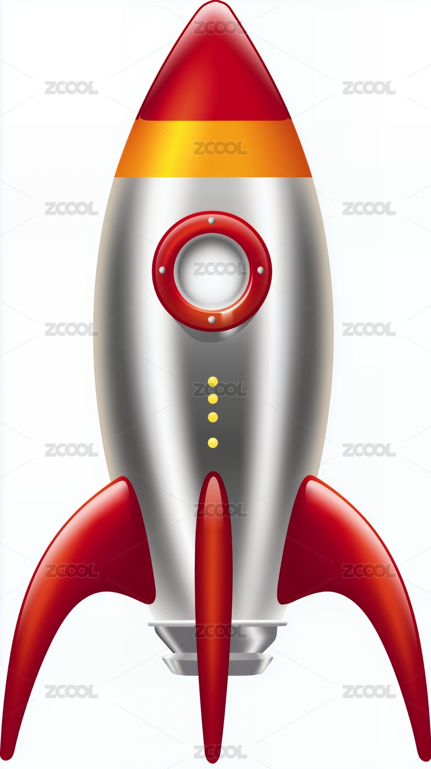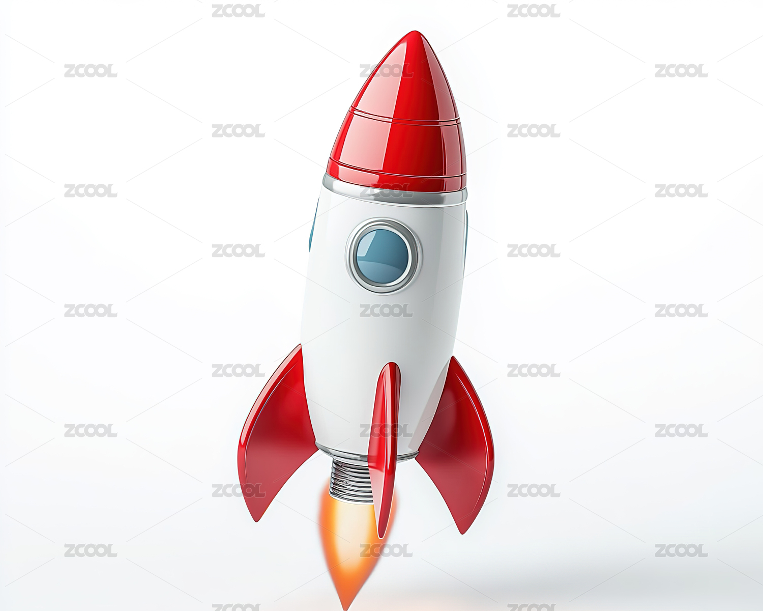 火箭,模型,红白配色,白色背景,立体,科技感,简约,几何形状,玩具,设计元素