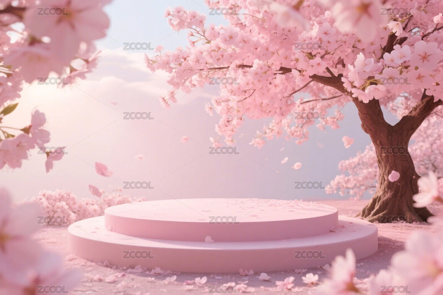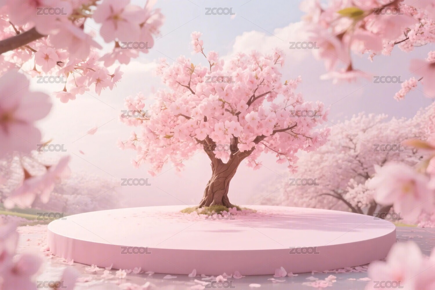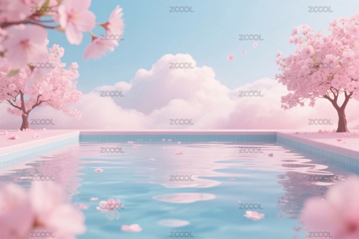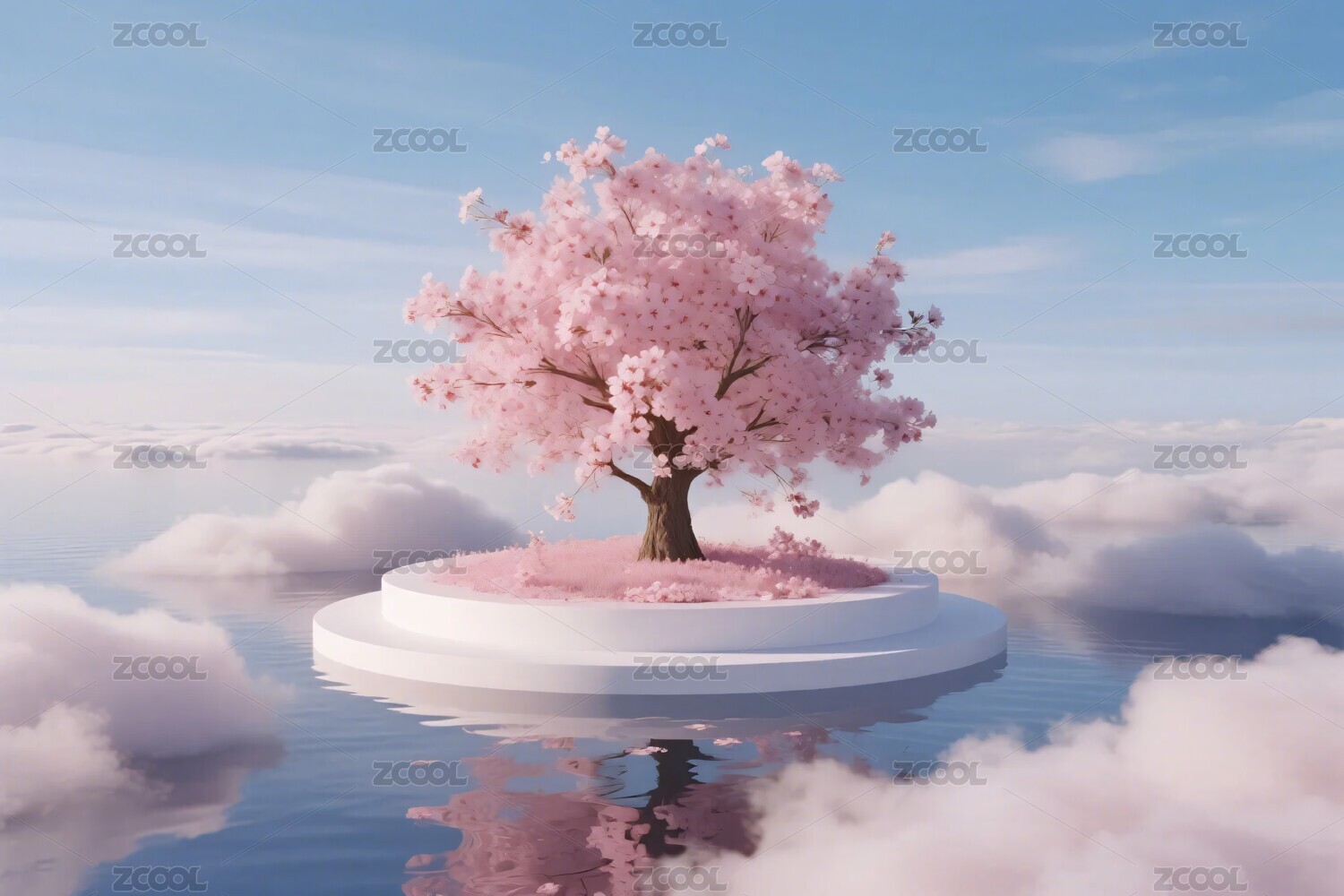 樱花,凉亭,天空,水面,梦幻,插画,立体,粉色彩,宁静,艺术