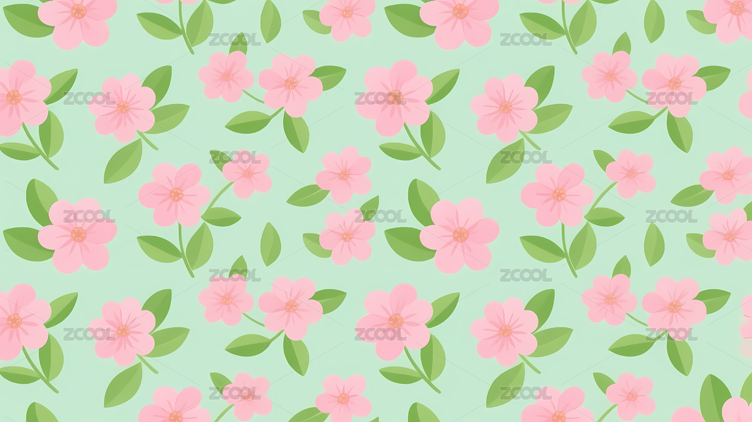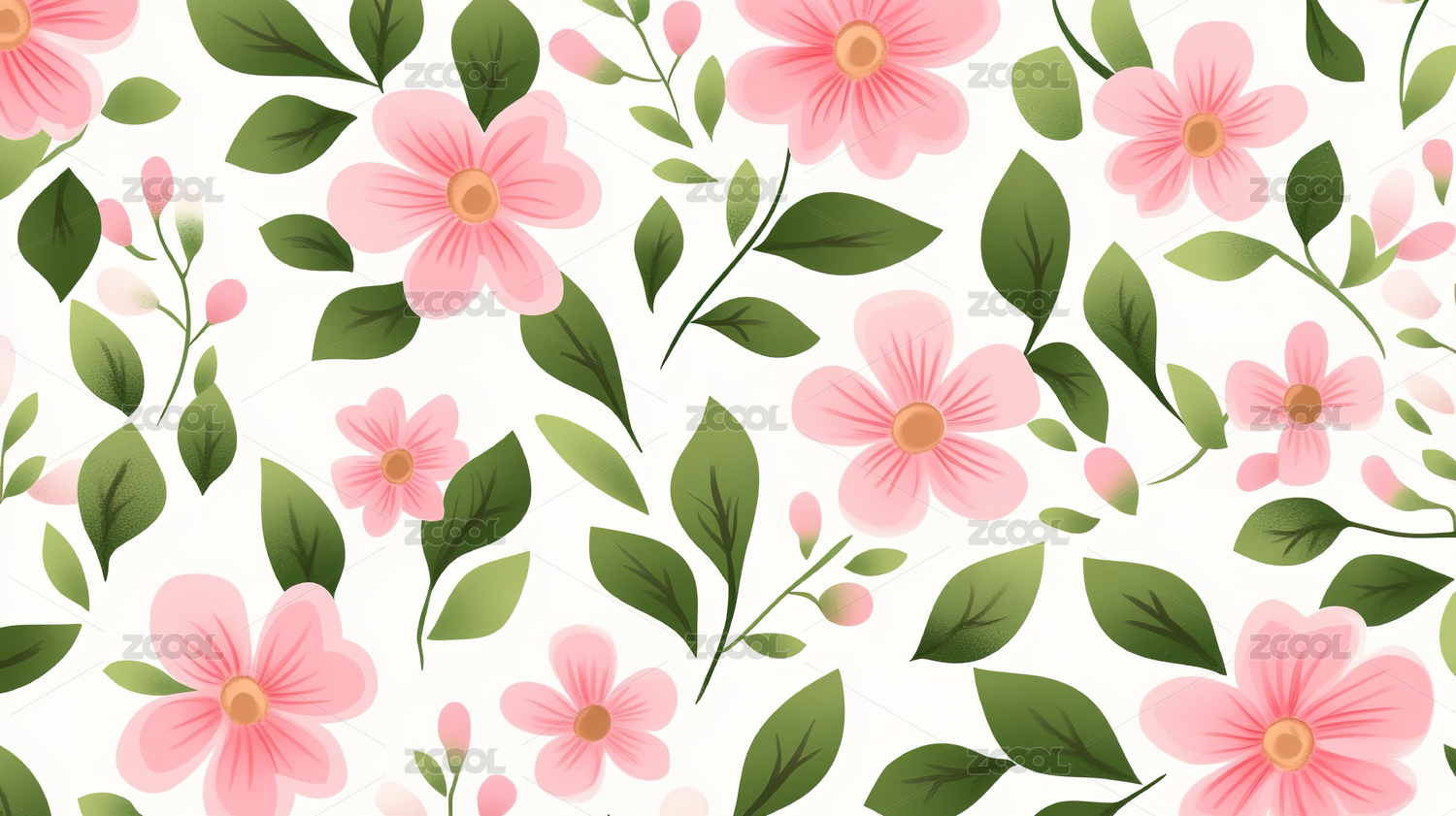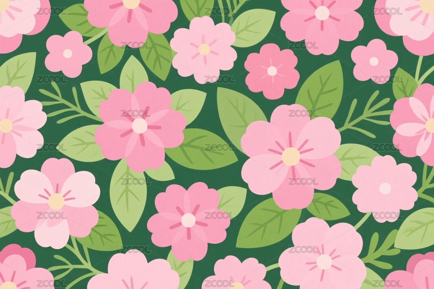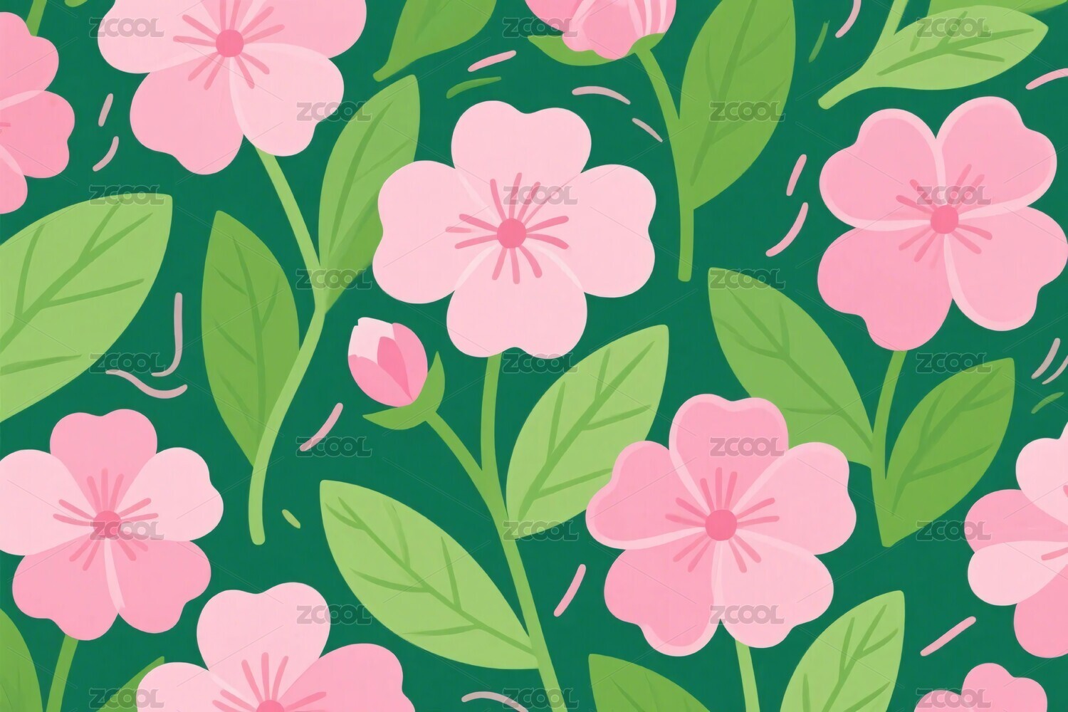 粉色花朵,绿色叶子,花卉,插画,图案,植物,背景,扁平设计,矢量图,装饰