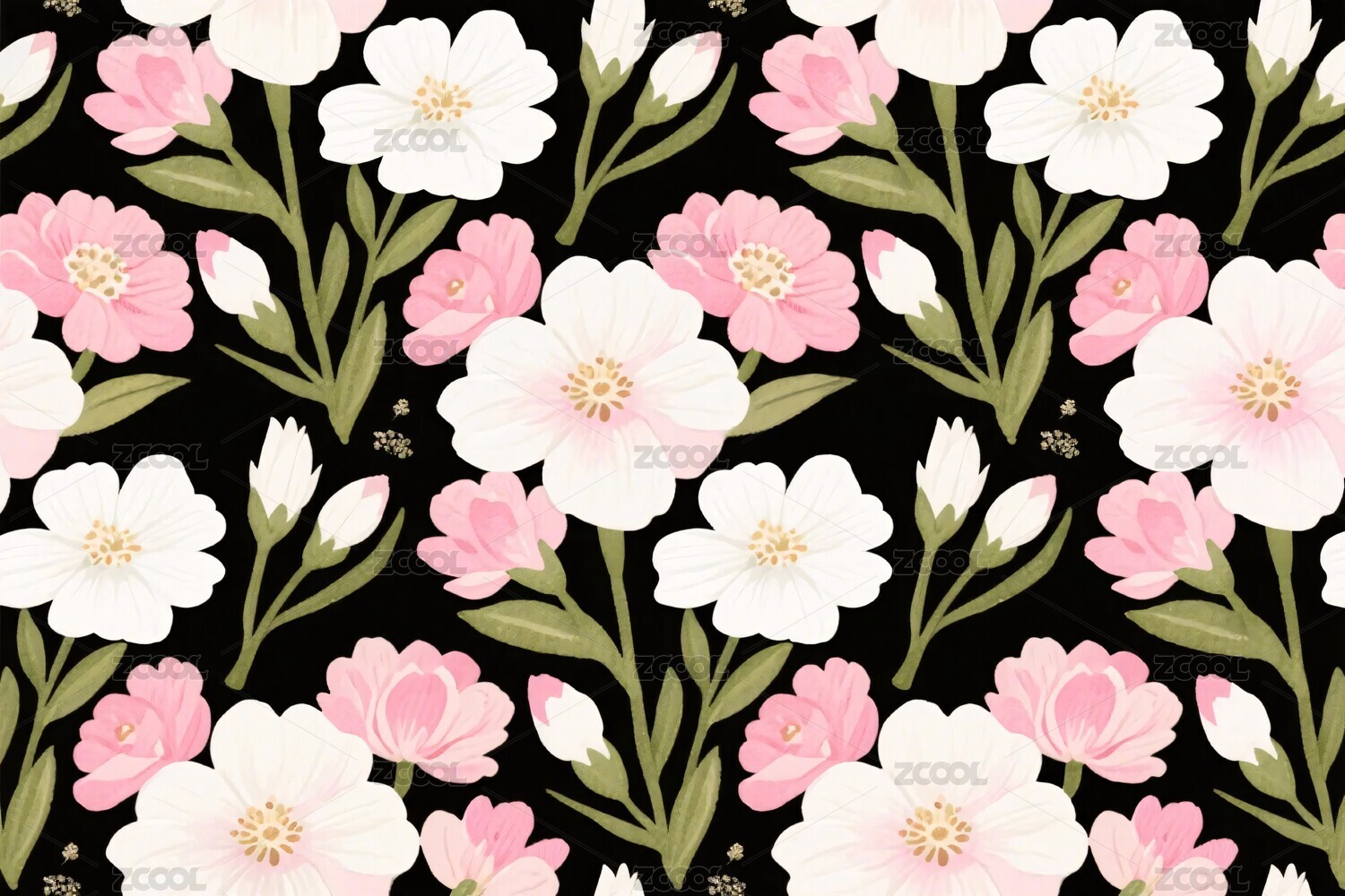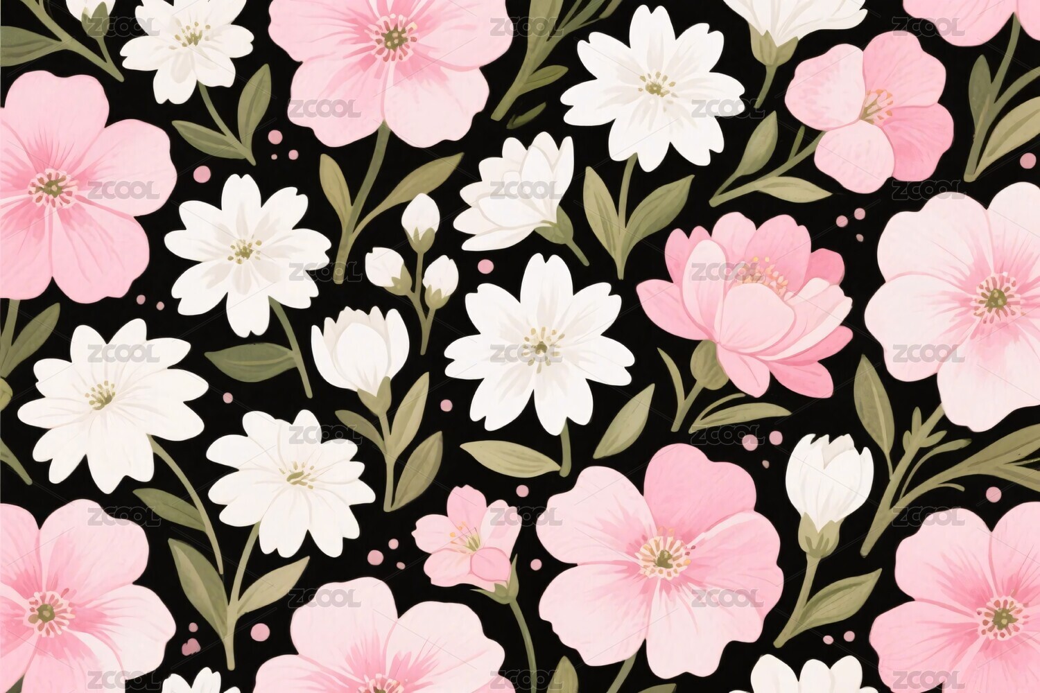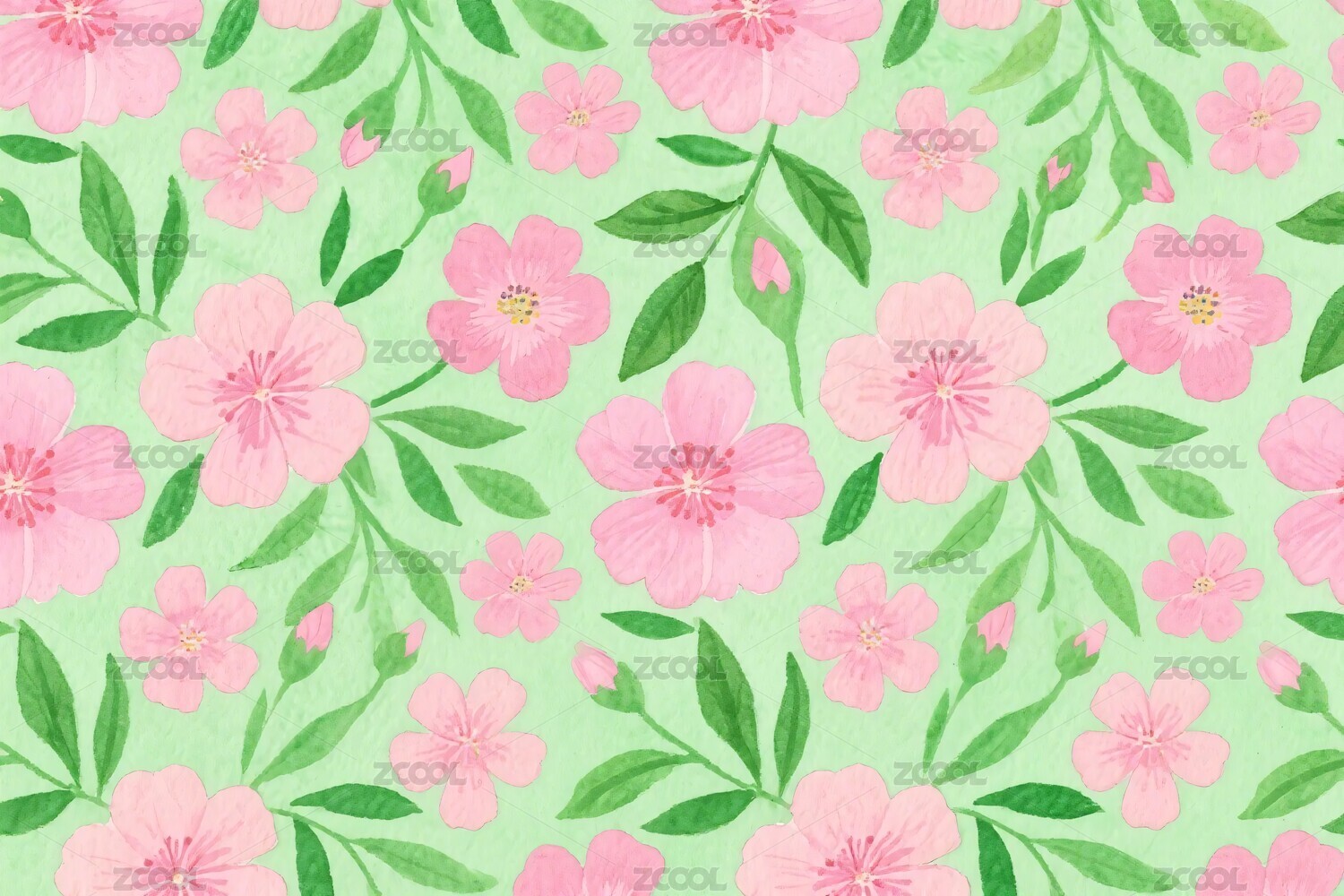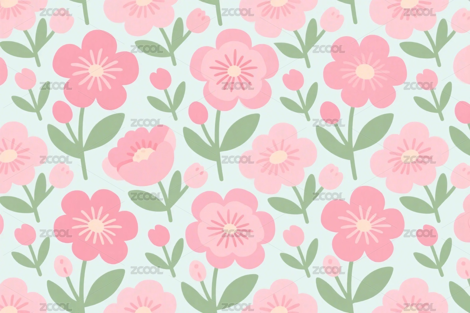 粉色花朵,绿色叶子,花卉,插画,图案,植物,背景,扁平设计,矢量图,装饰