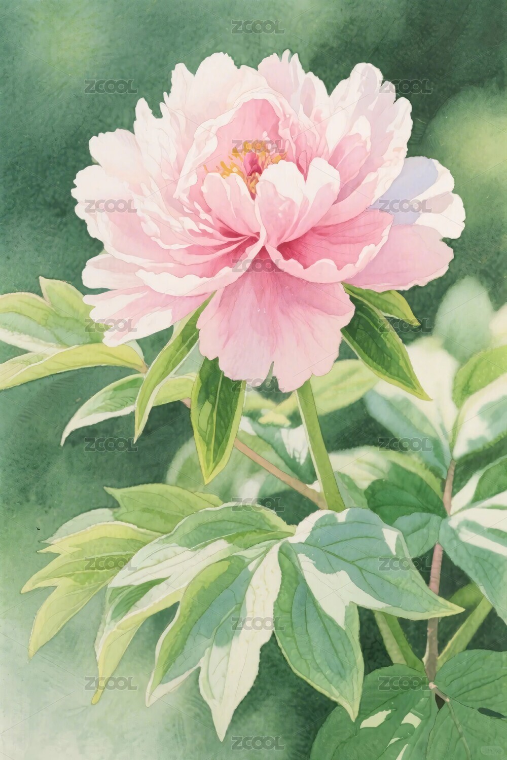 粉色,花朵,绿叶,水彩,插画,背景,花卉,自然,装饰,艺术