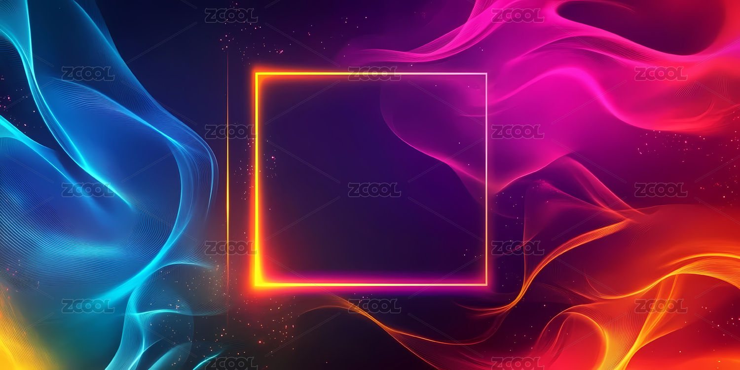 霓虹色流光背景与方形框架