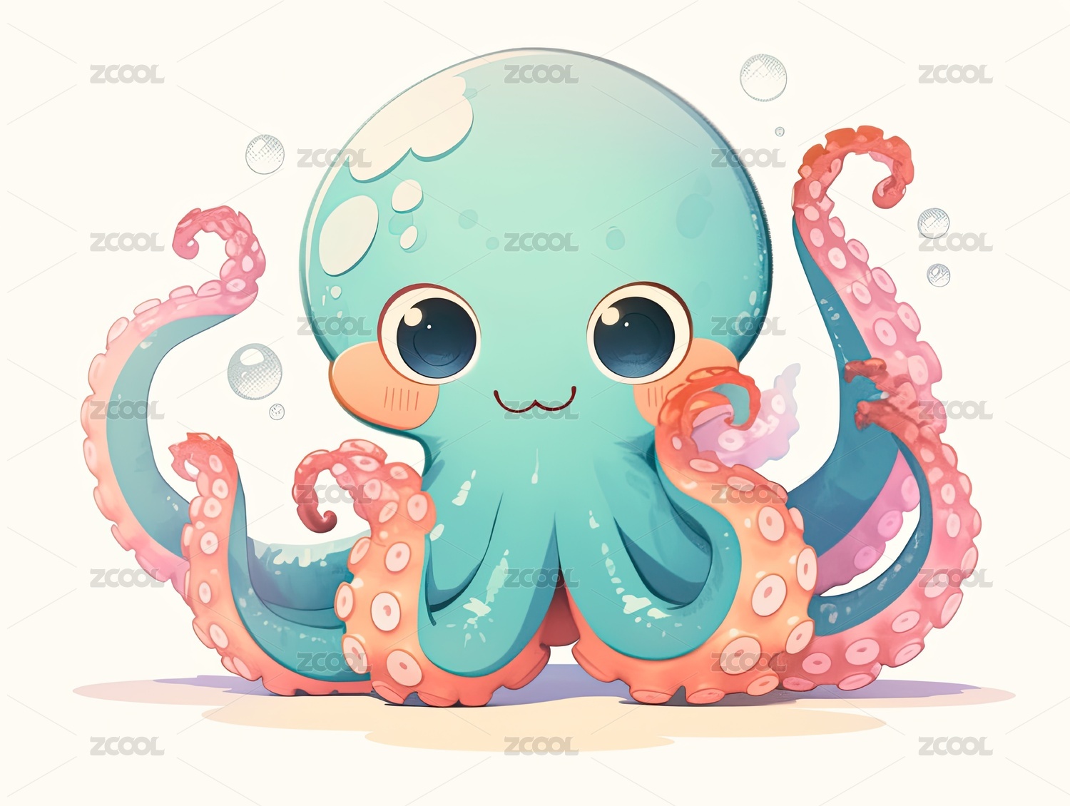 章鱼可爱唯美野生动物3D卡通插画壁纸