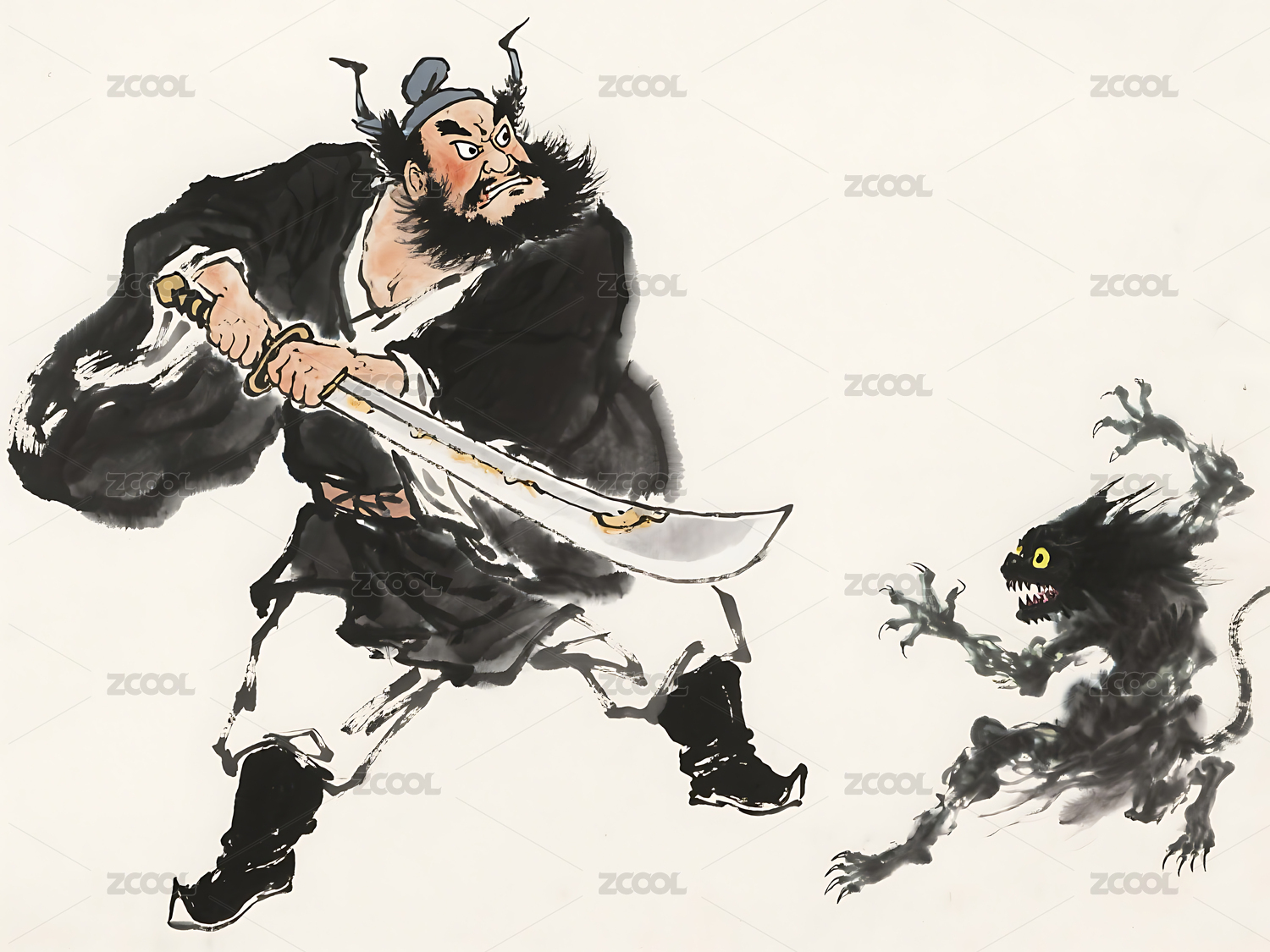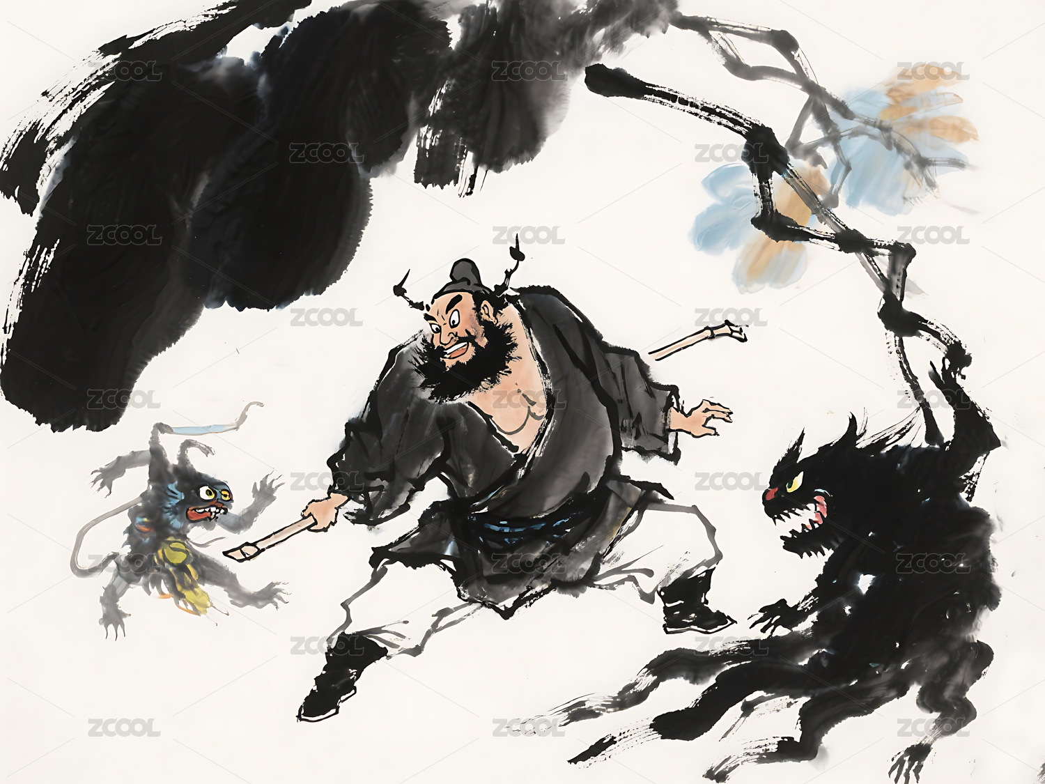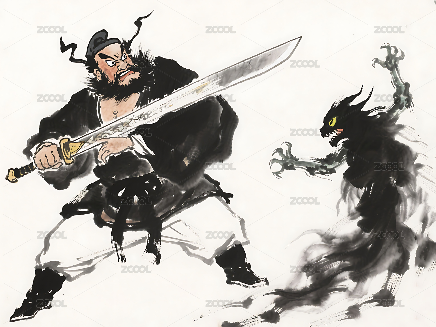 钟馗,捉妖,水墨画,国画,传统艺术,神话,驱邪,镇宅,民俗,信仰