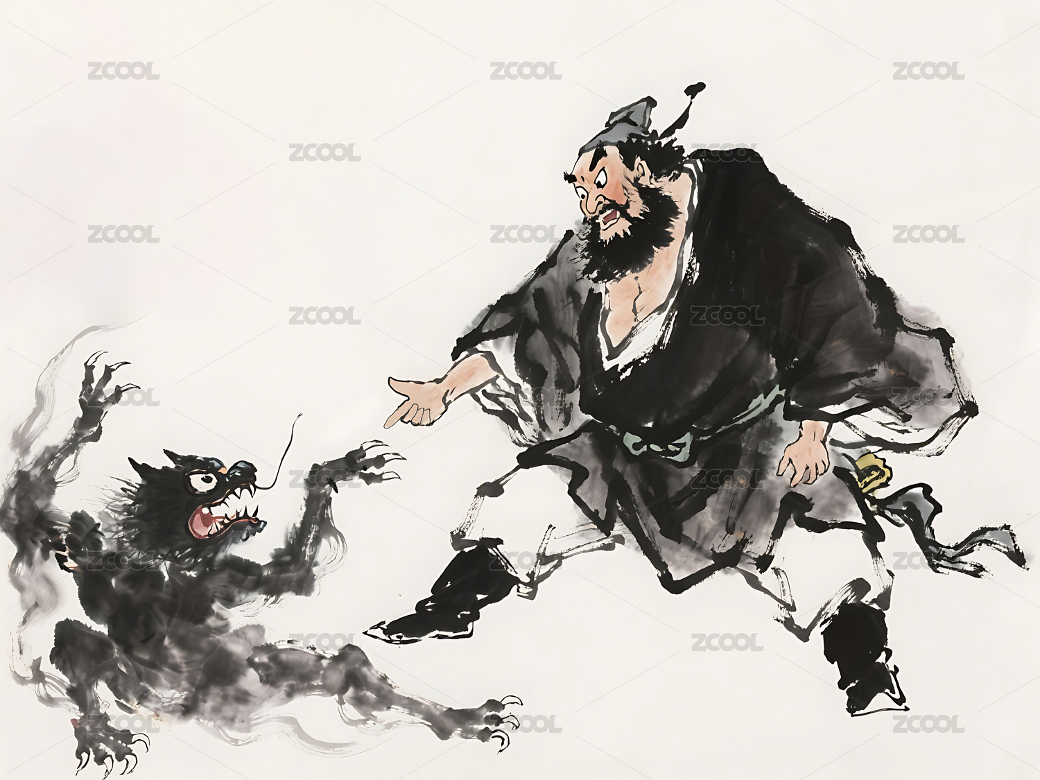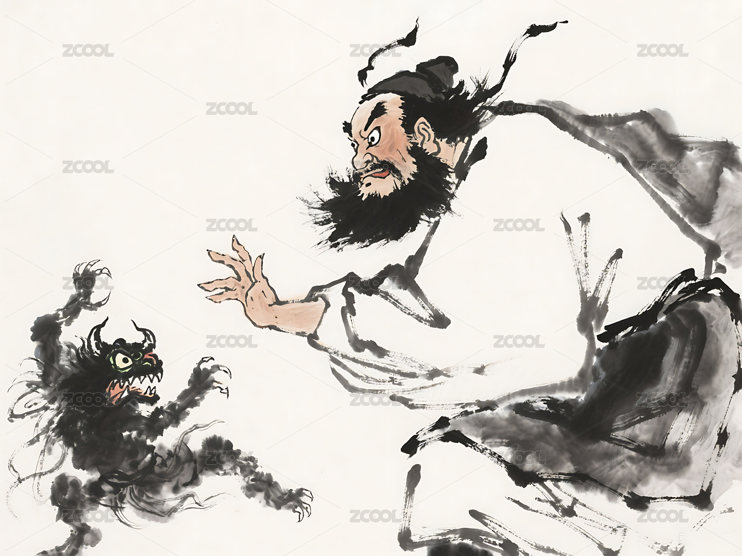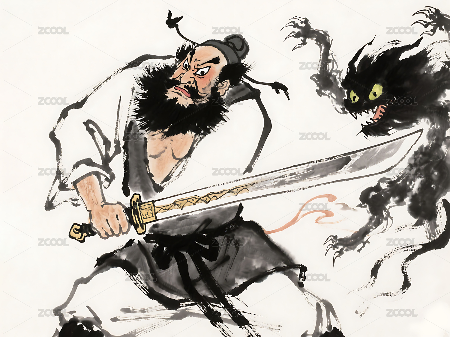 钟馗,捉妖,水墨画,国画,传统艺术,神话,驱邪,镇宅,民俗,信仰