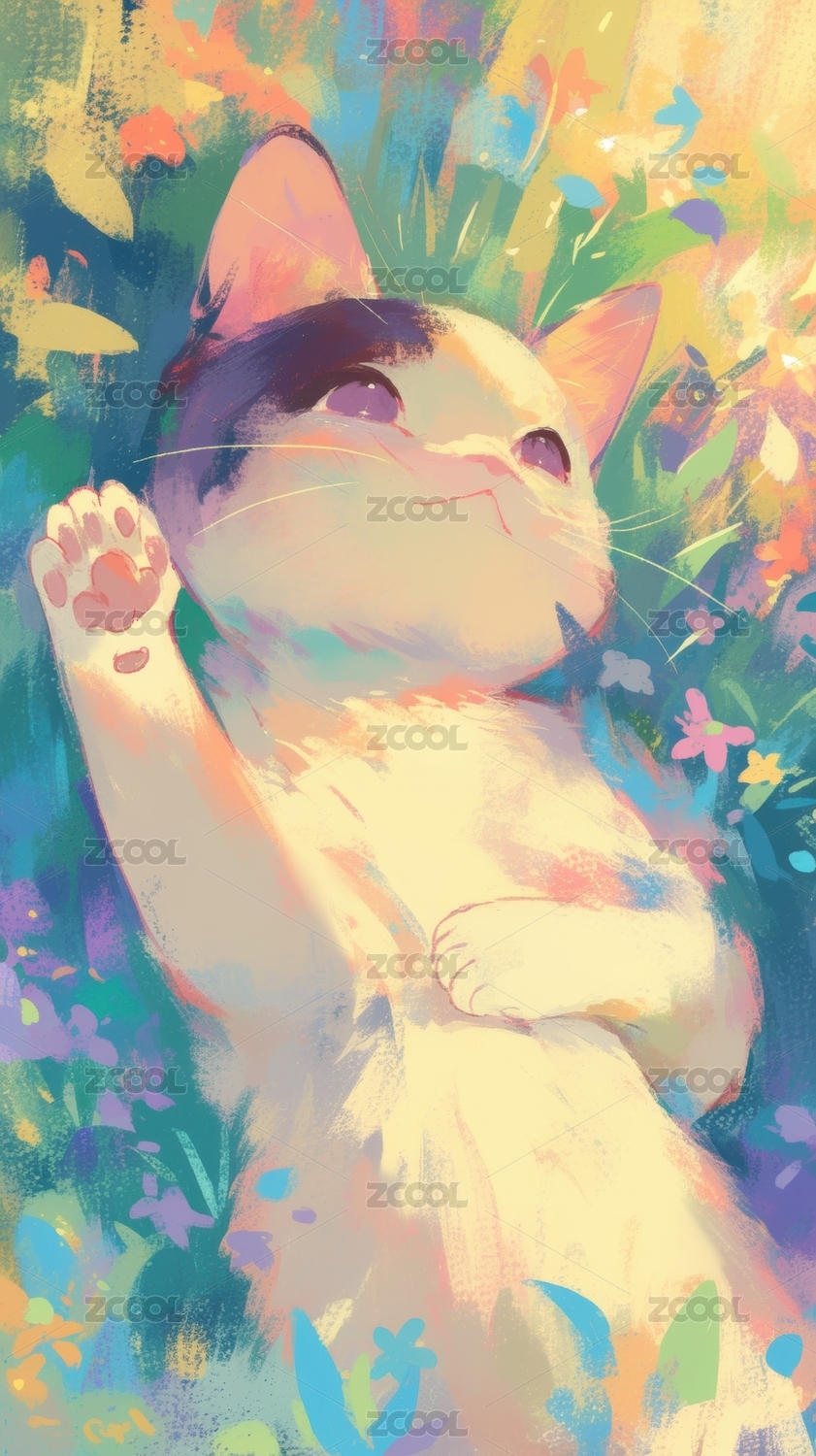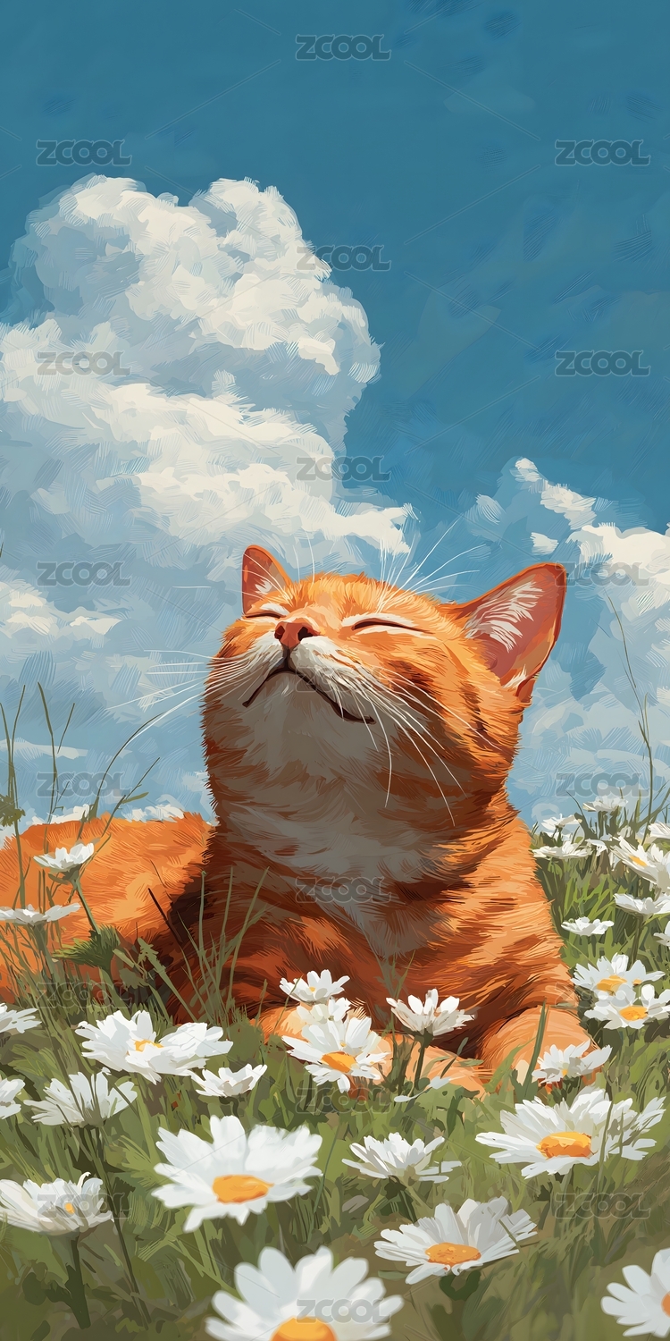 插画,漫画,动漫,日漫,仰望,自然,可爱,蓝天,猫咪,墙角
