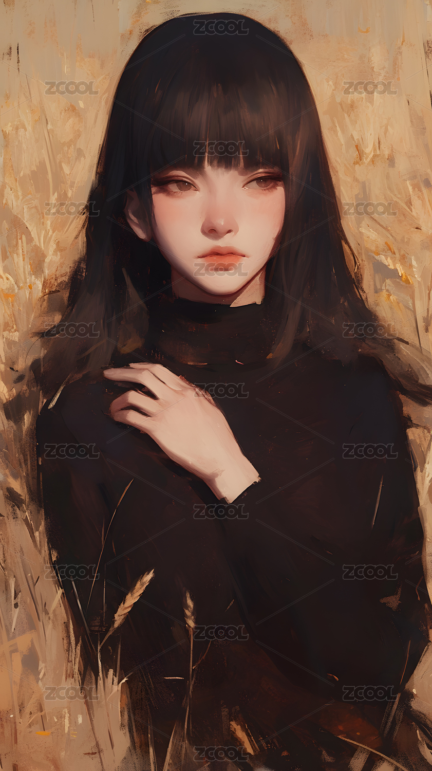 黑发少女侧颜唯美画像