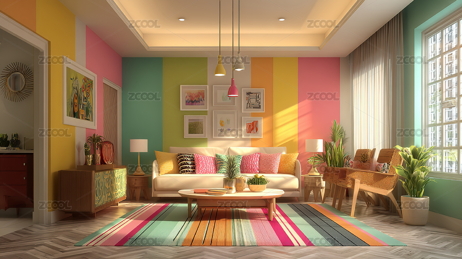 3D室内多巴胺色系极简背景墙