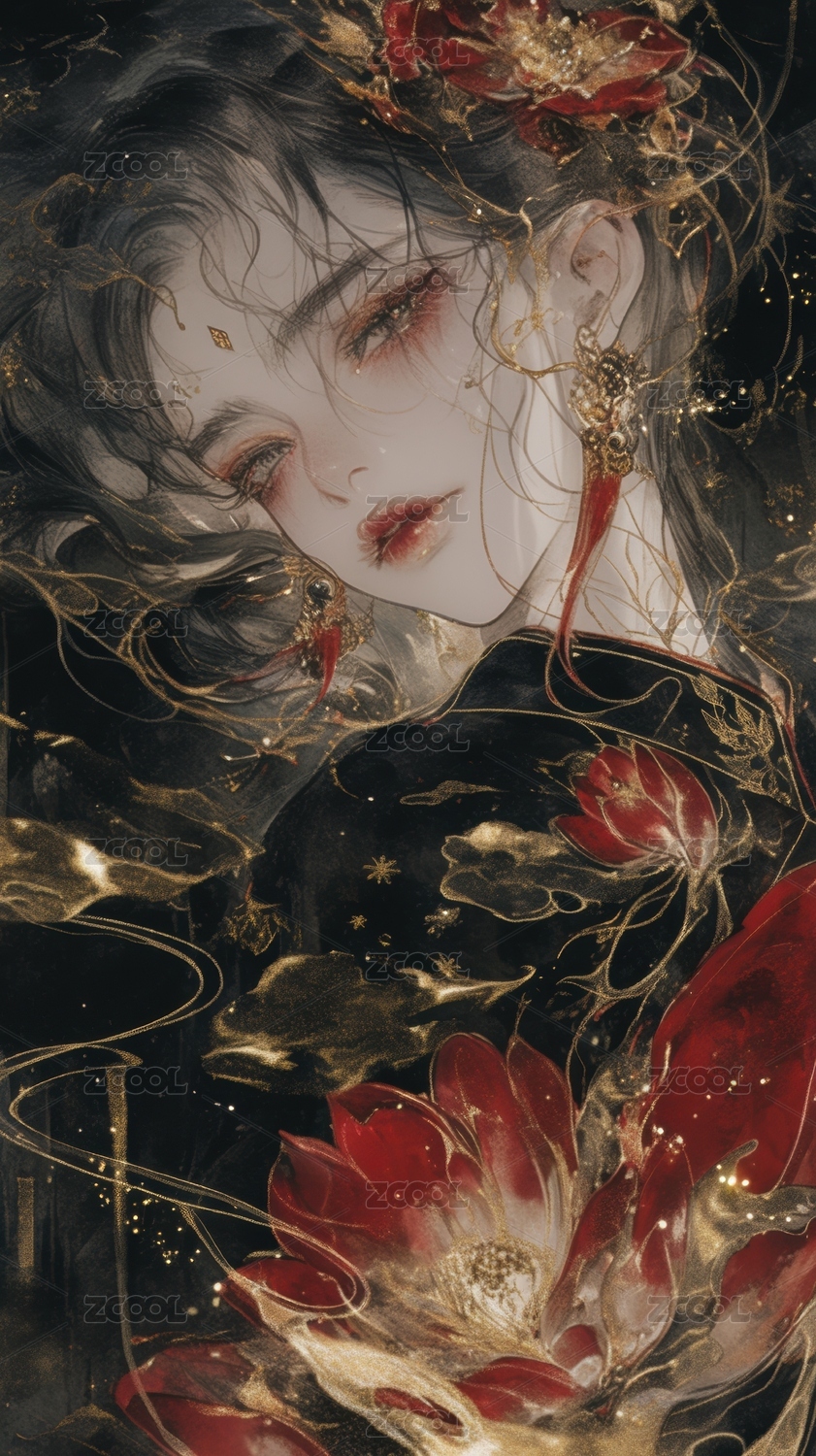 黑发红饰的神秘女子
