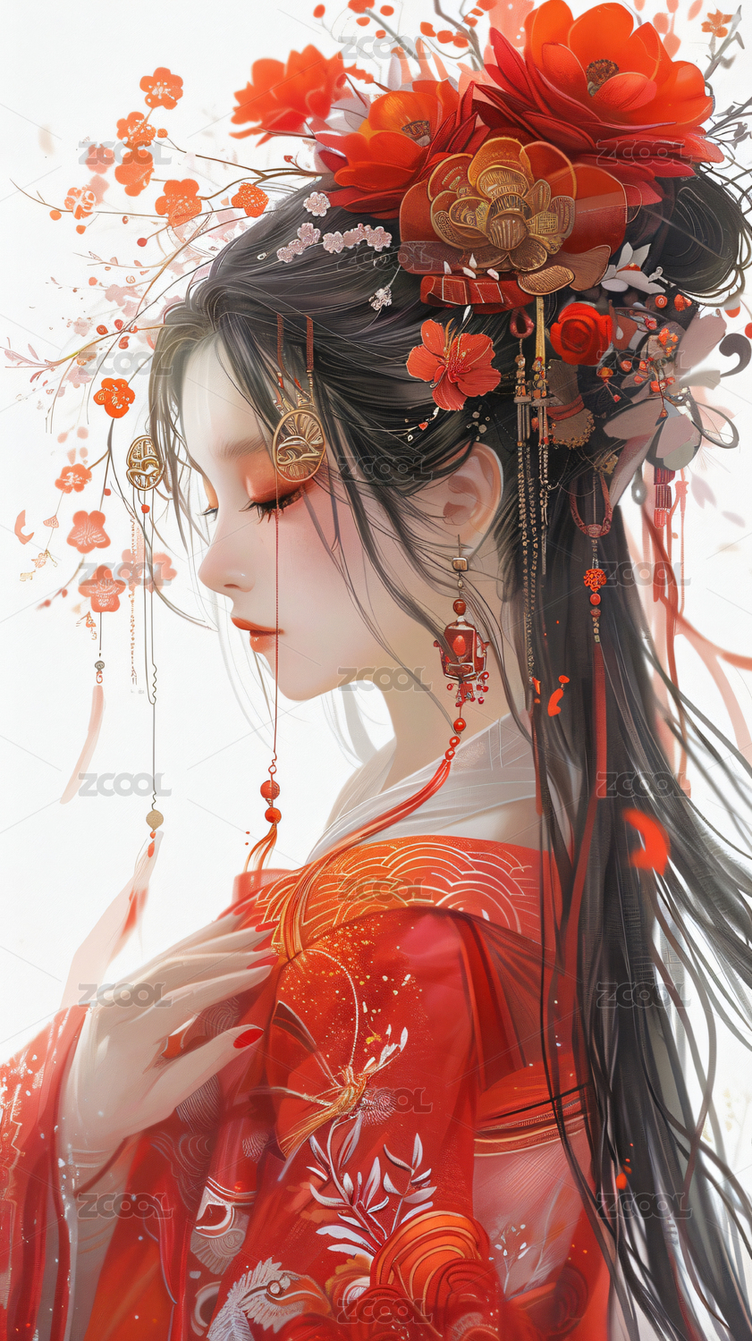 古典美人侧脸华丽服饰与精致发饰