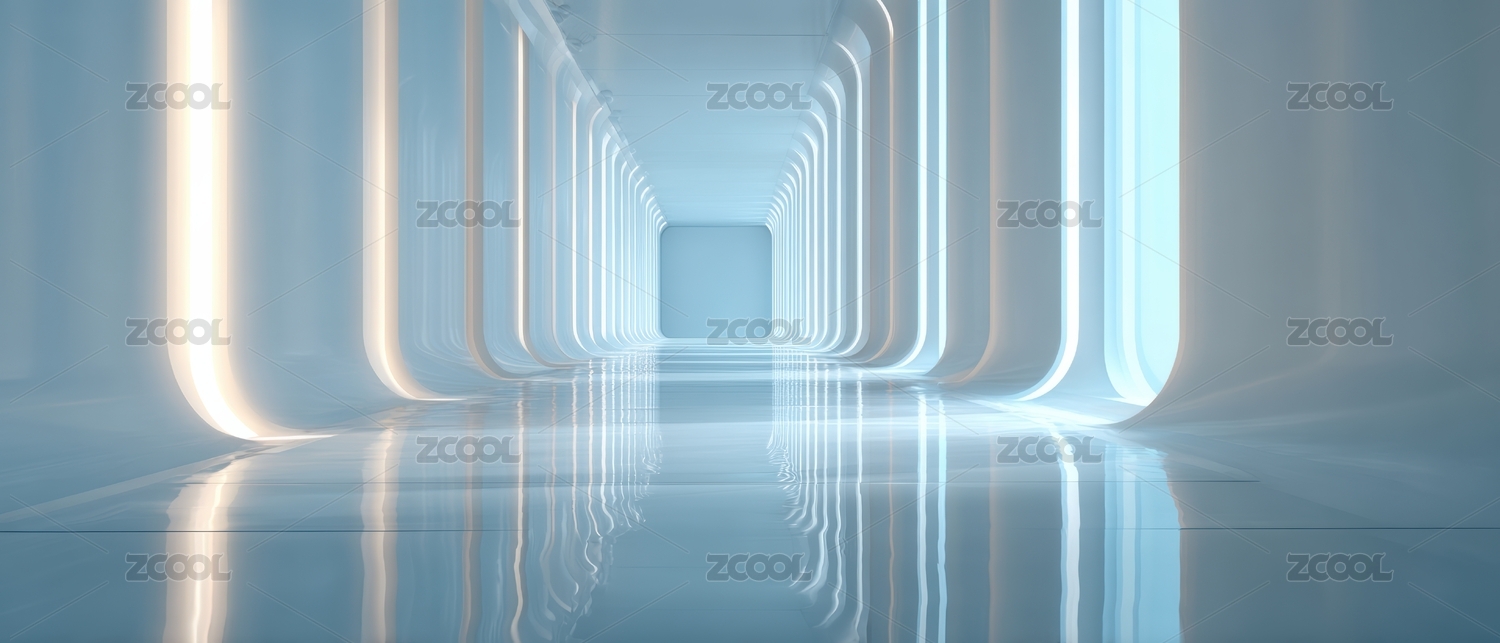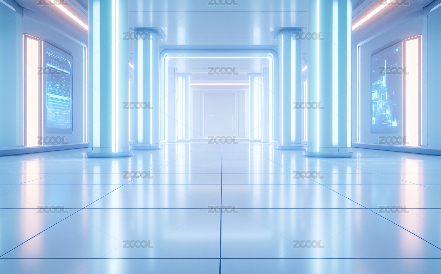 3D渲染科幻延伸蓝色未来科技感空间场景