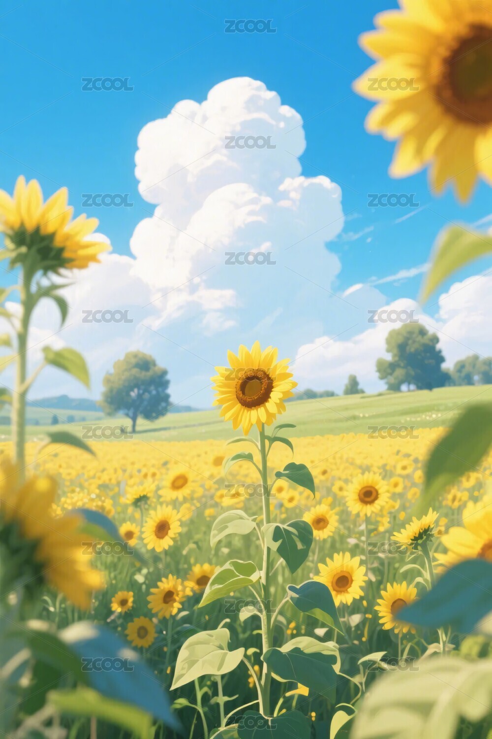向日葵花海风景插画