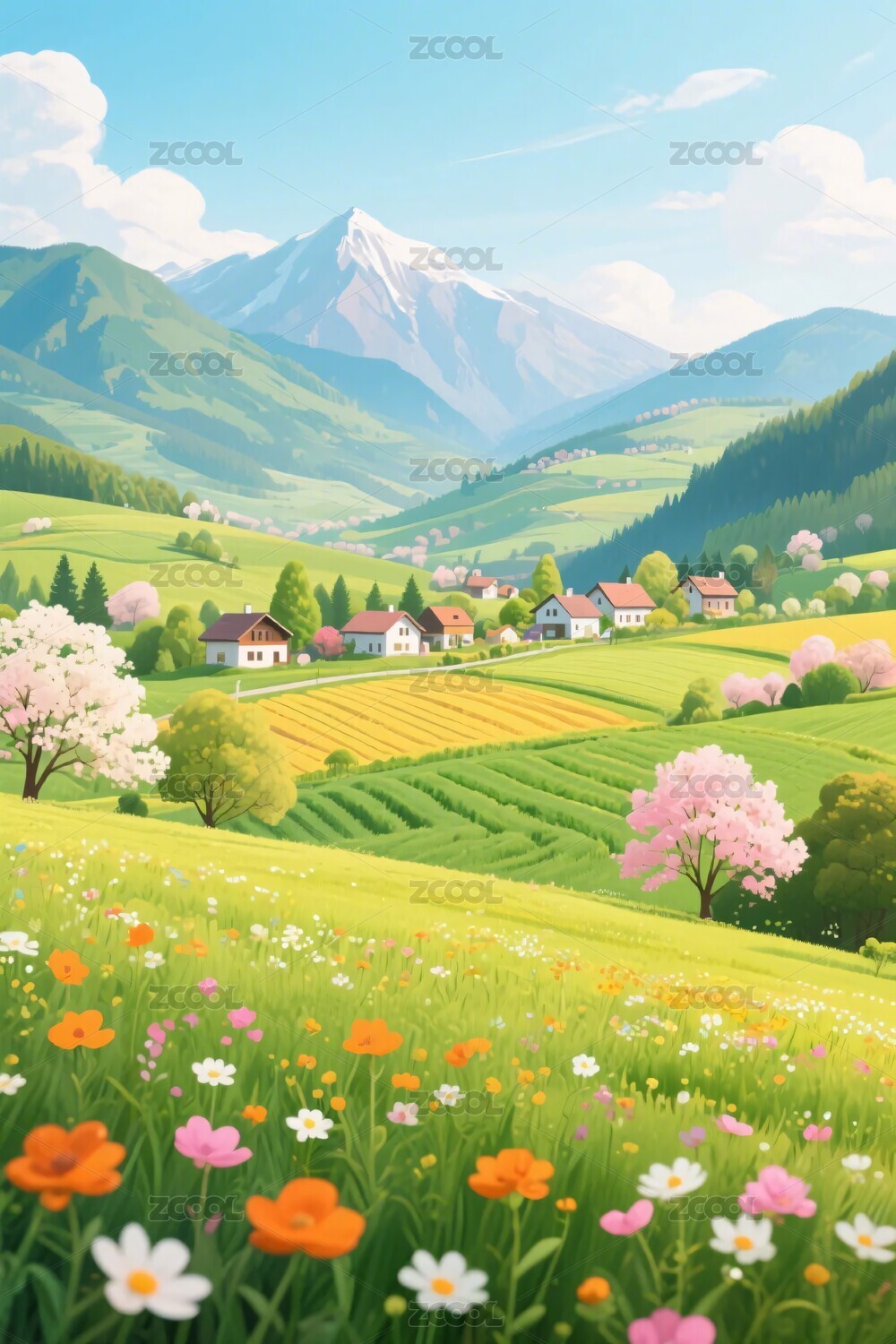 春日田园风景插画