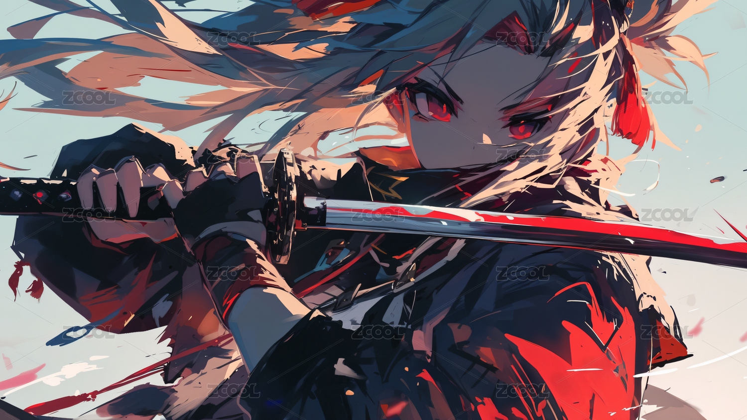 动漫二次元中世纪美少女骑士宝剑雪地教堂