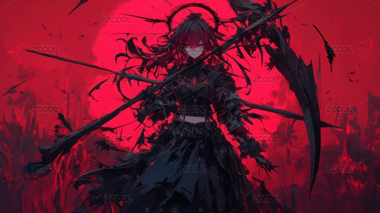 光影,插画,艺术,长发,动态,夜晚,场景,战士,火焰,盔甲