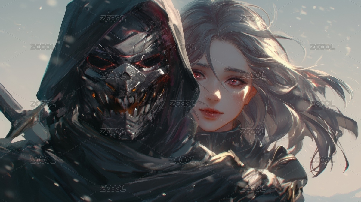 光影,卡通,插画,背景,艺术,女子,细节,长发,神秘,战士