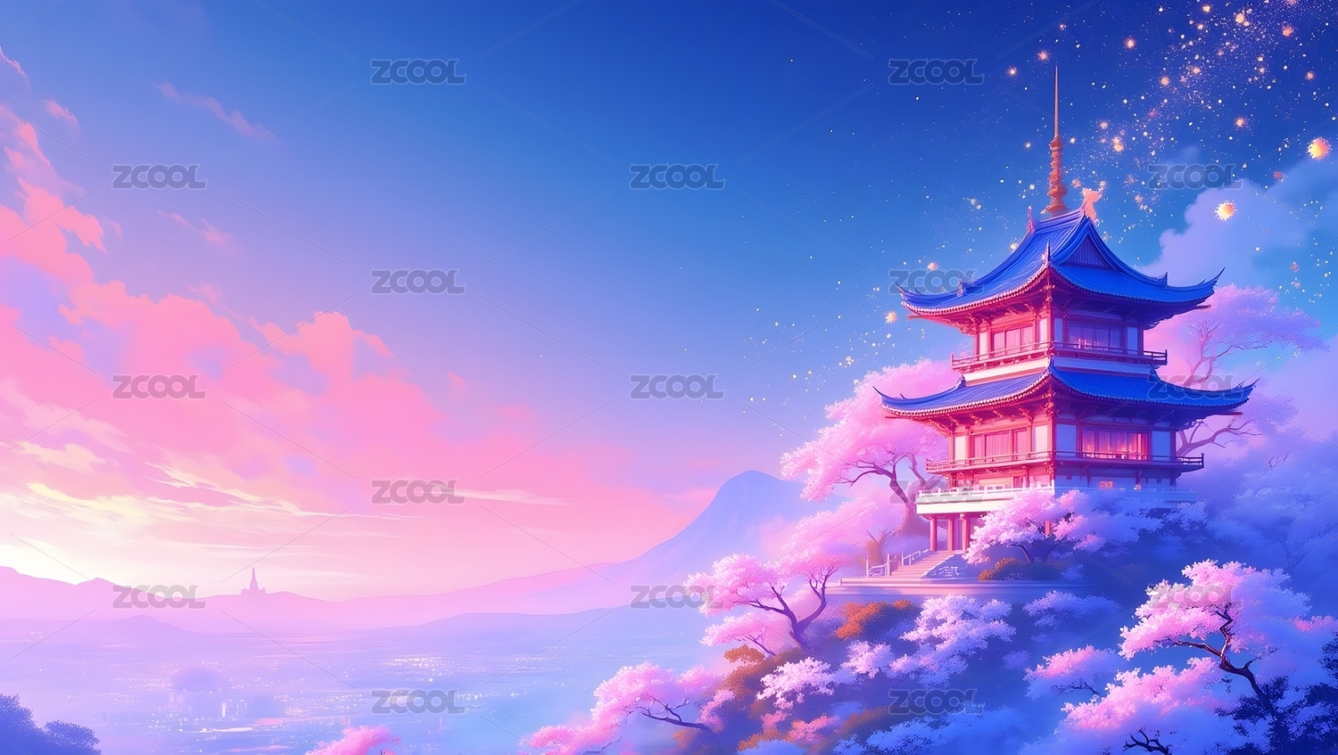 梦幻塔楼与樱花树