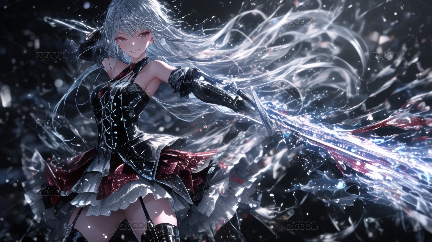 银发少女挥剑光芒四射