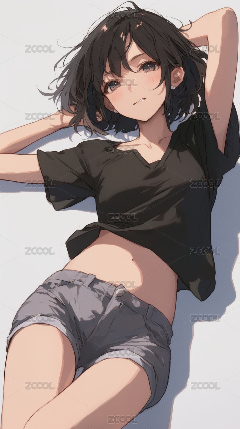 黑衣短裤的动漫少女