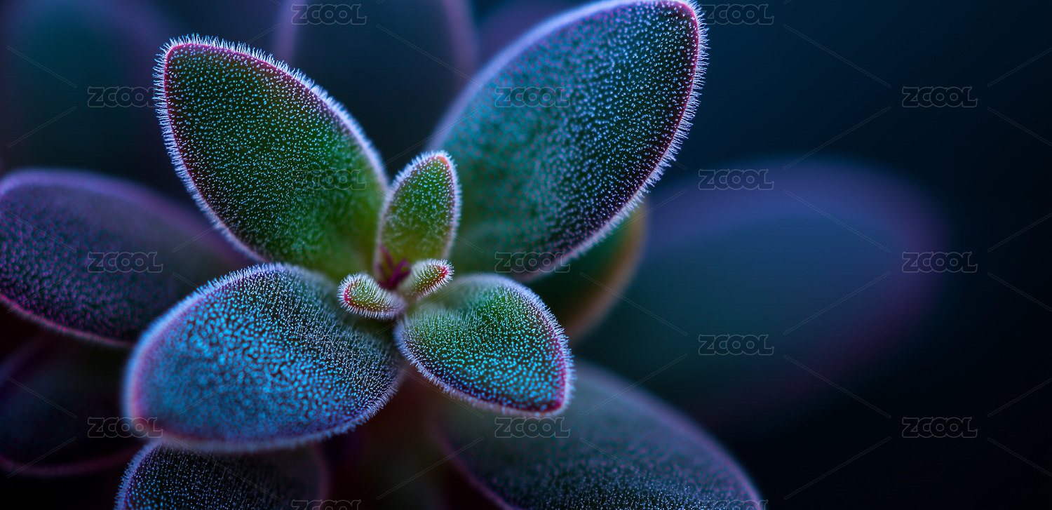 特写带绒毛的多彩多肉叶片展现微观植物美感